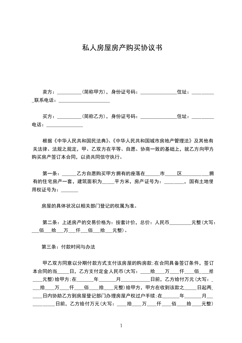 三、上列房屋包括附属设备,双方议定房屋价款人民币_______万元,由甲方售卖给乙方。