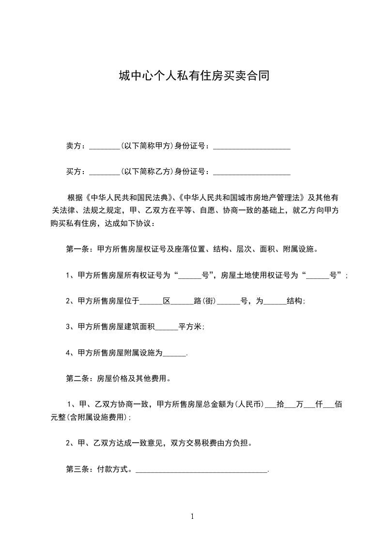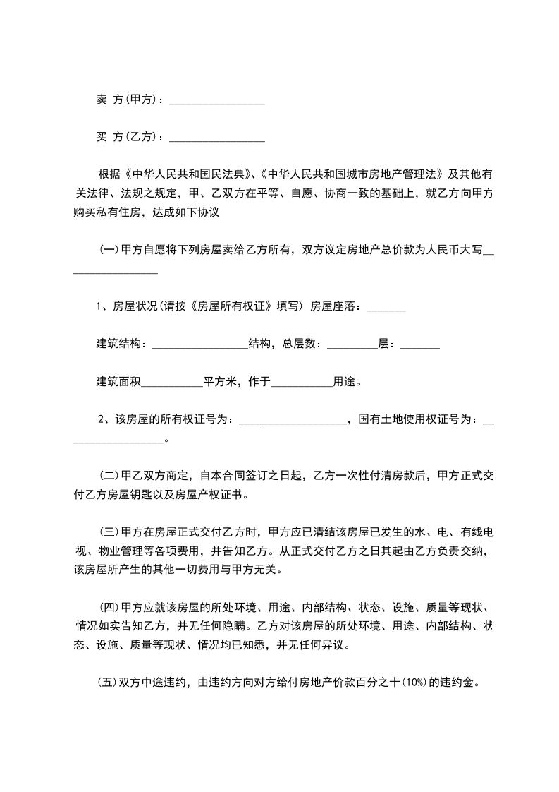 根据《中华人民共和国民法典》、《中华人民共和国城市房地产管理法》及其他有关法律、法规之规定,甲、乙双方在平等、自愿、协商一致的基础上,就乙方向甲方购买私有住房,达成如下协议