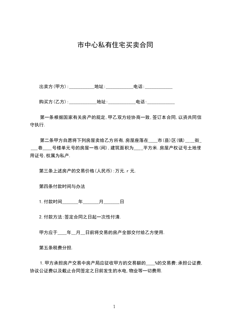 (一)甲方自愿将下列房屋卖给乙方所有,双方议定房地产总价款为人民币大写_________________