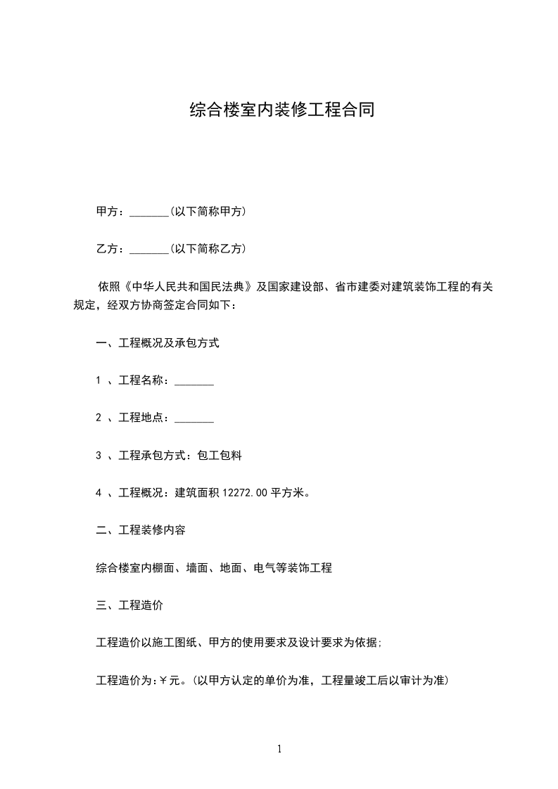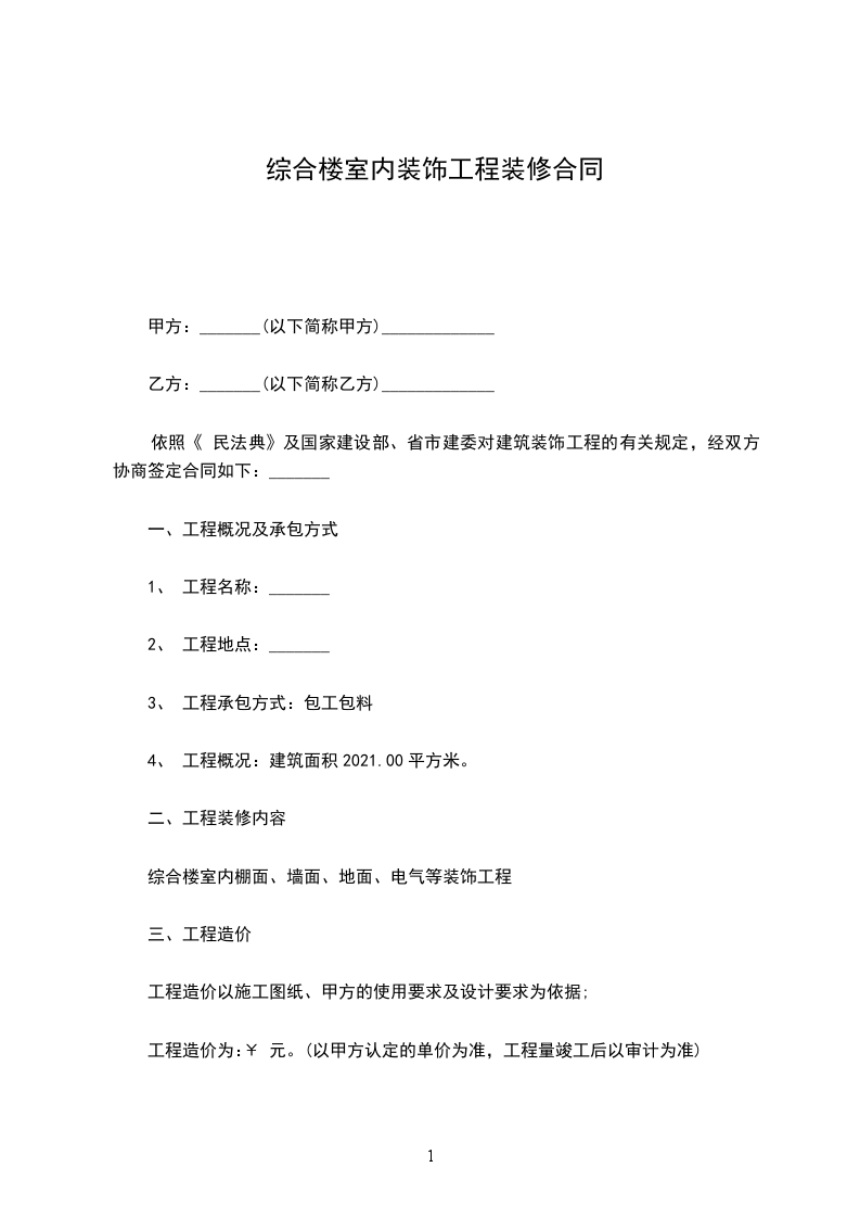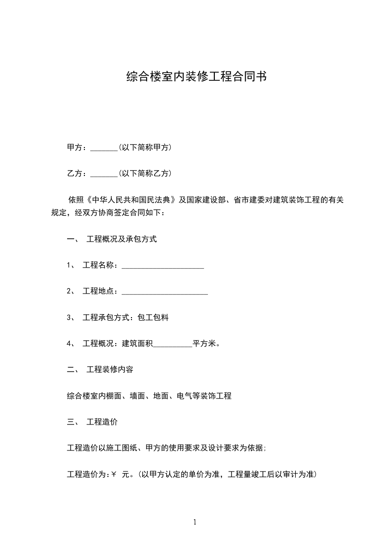 综合楼室内棚面、墙面、地面、电气等装饰工程