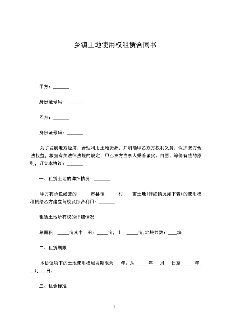 甲方将承包经营的______市县镇______村____亩土地(详细情况如下表)的使用权租赁给乙方建立驾校及综合利用:_______