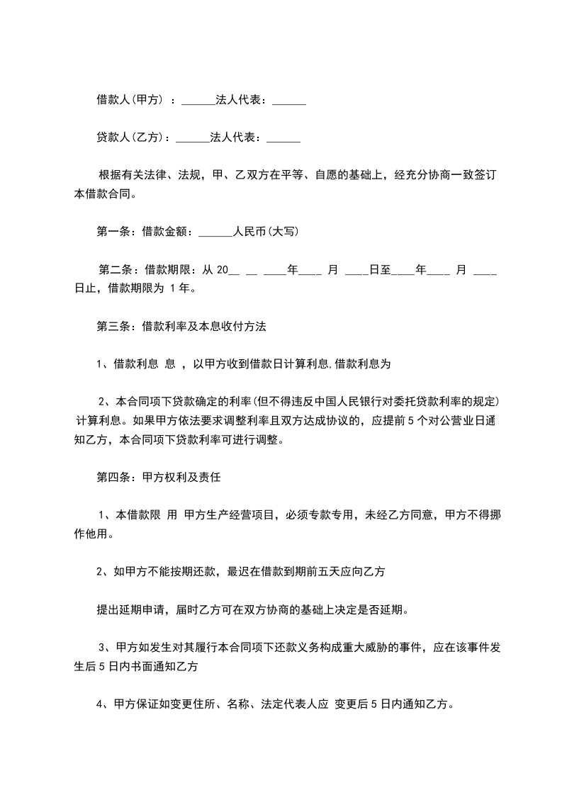 1、借款时间共伍年,自________年____月____日起,至________年____月____日止。出借方将于20________年____月____日之前,将该款项一次性交到借款方财务部门。