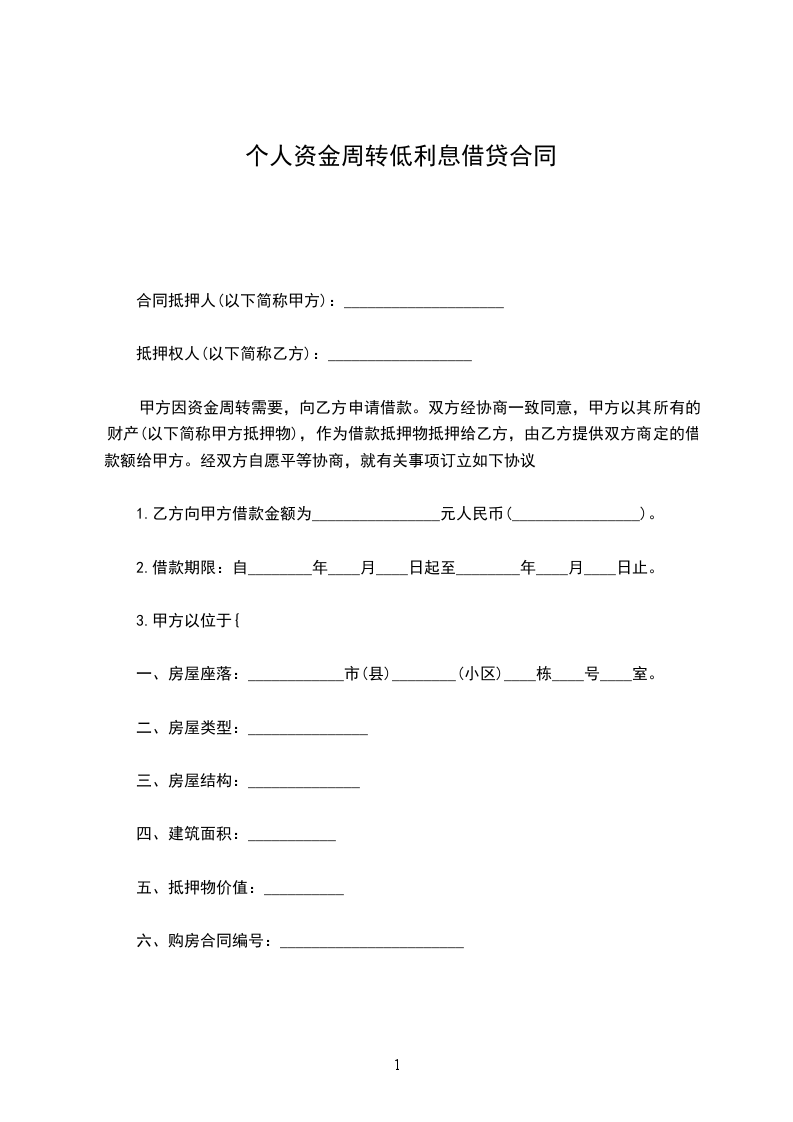 甲方:________________________ 抵押人住址:________________________________________________ 联系电话:_______________