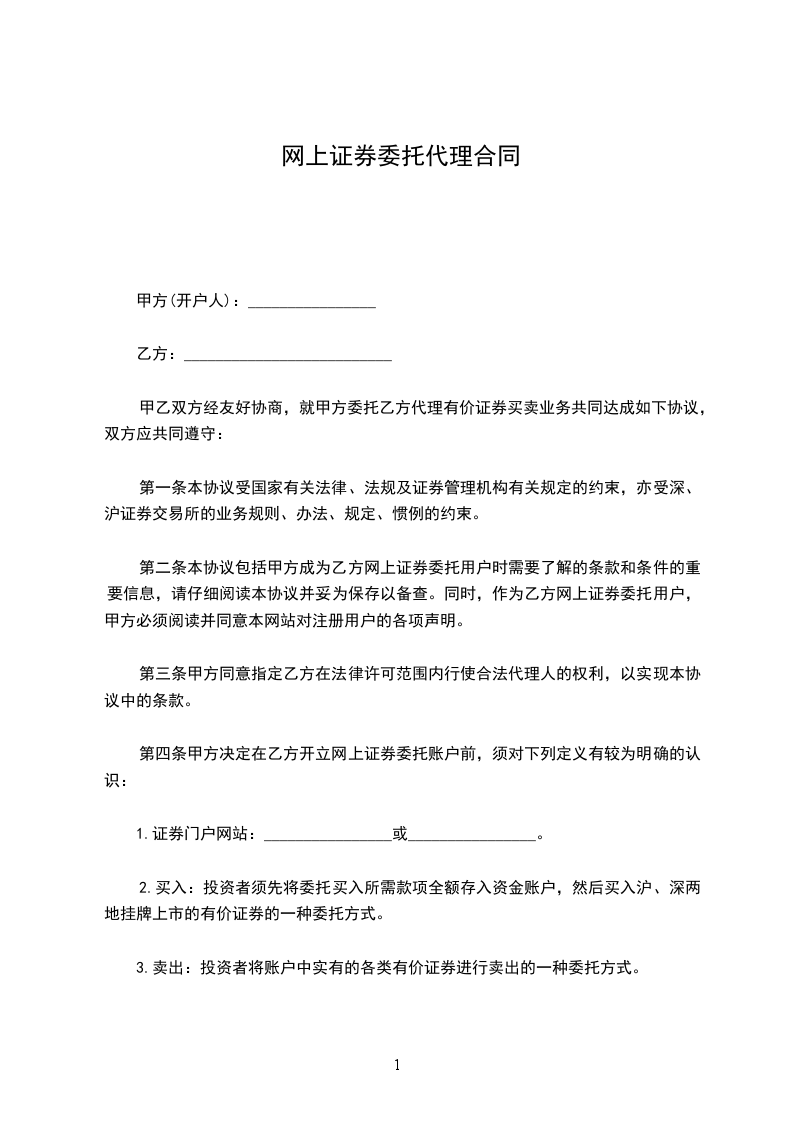 甲乙双方经友好协商,就甲方委托乙方代理有价证券网上买卖业务共同达成如下协议,双方应共同遵守:_______
