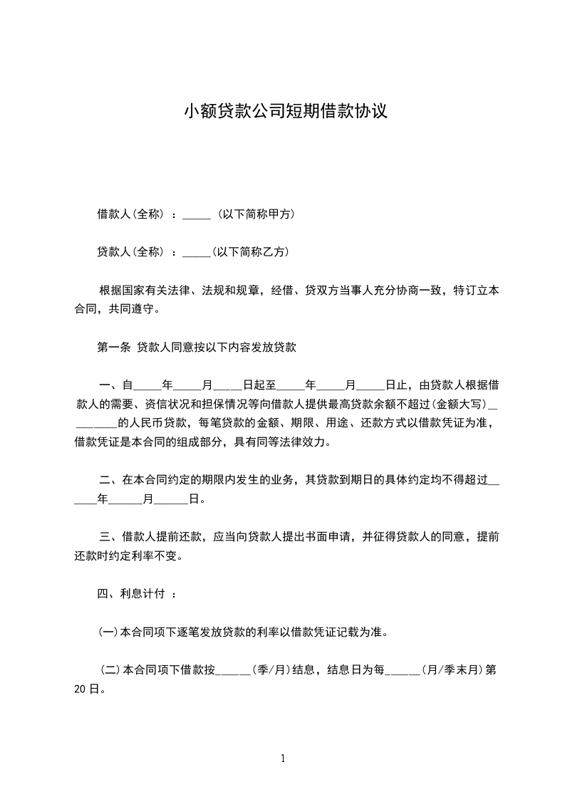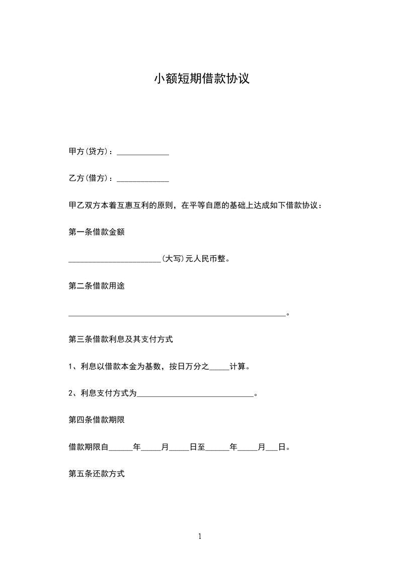 一、甲方愿贷与乙方人民币__________元整,于订立本约之同时,由甲方给付乙方,不另立据。