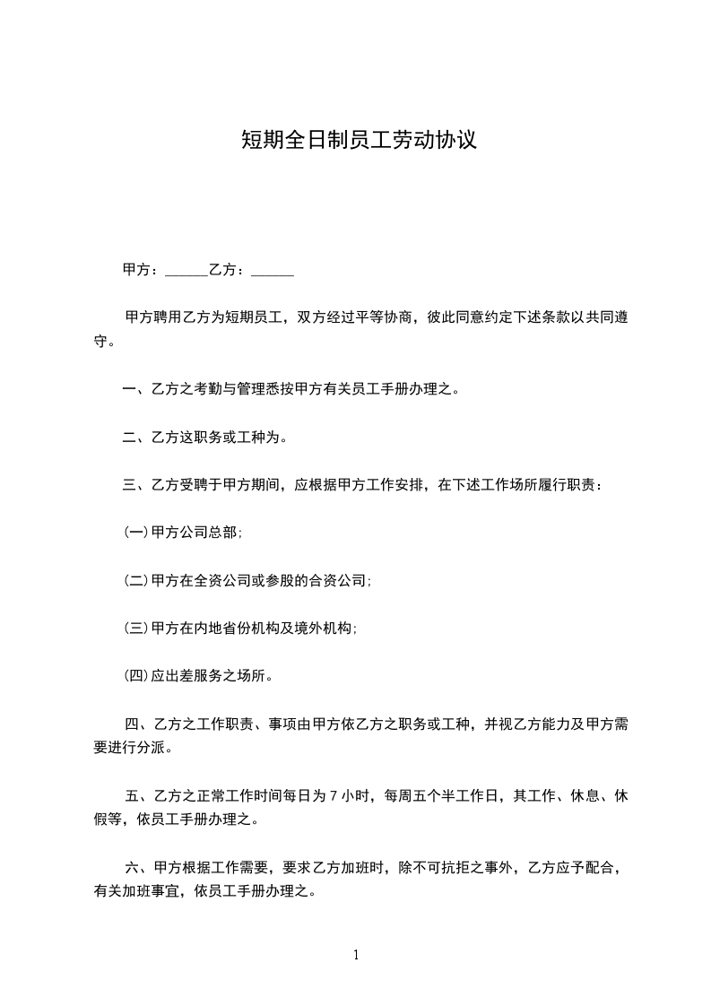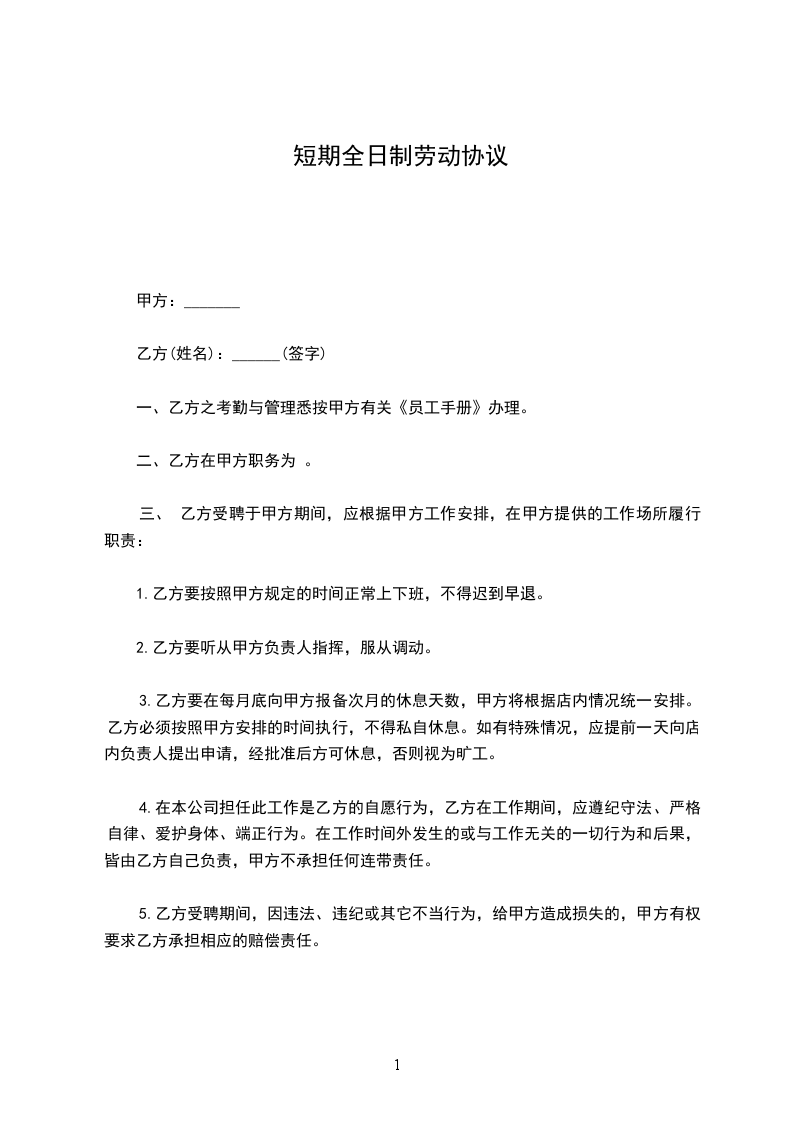 1.乙方要按照甲方规定的时间正常上下班,不得迟到早退。