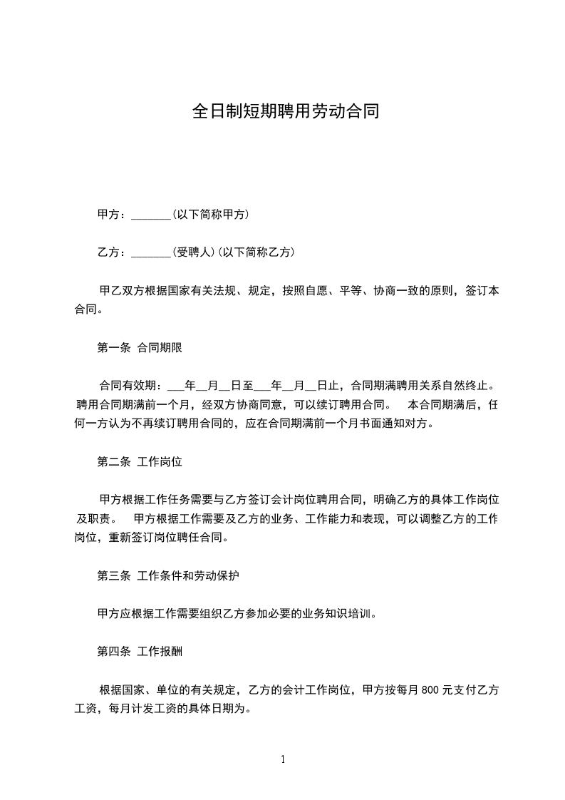 七、甲方应按月支付乙方报酬,乙方的工资待遇每月_____元 人民币(待遇内包含全勤奖,但是不含有计件提成)。
