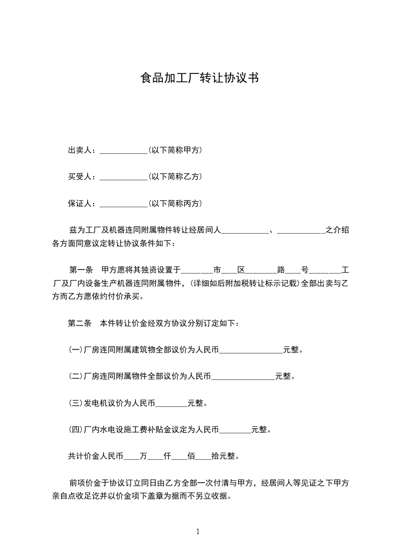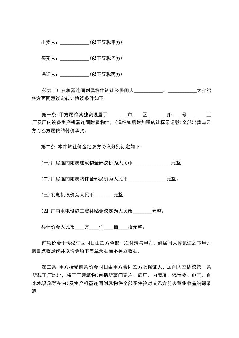 双方兹就工厂转让事宜,订立本件契约,条款如下: