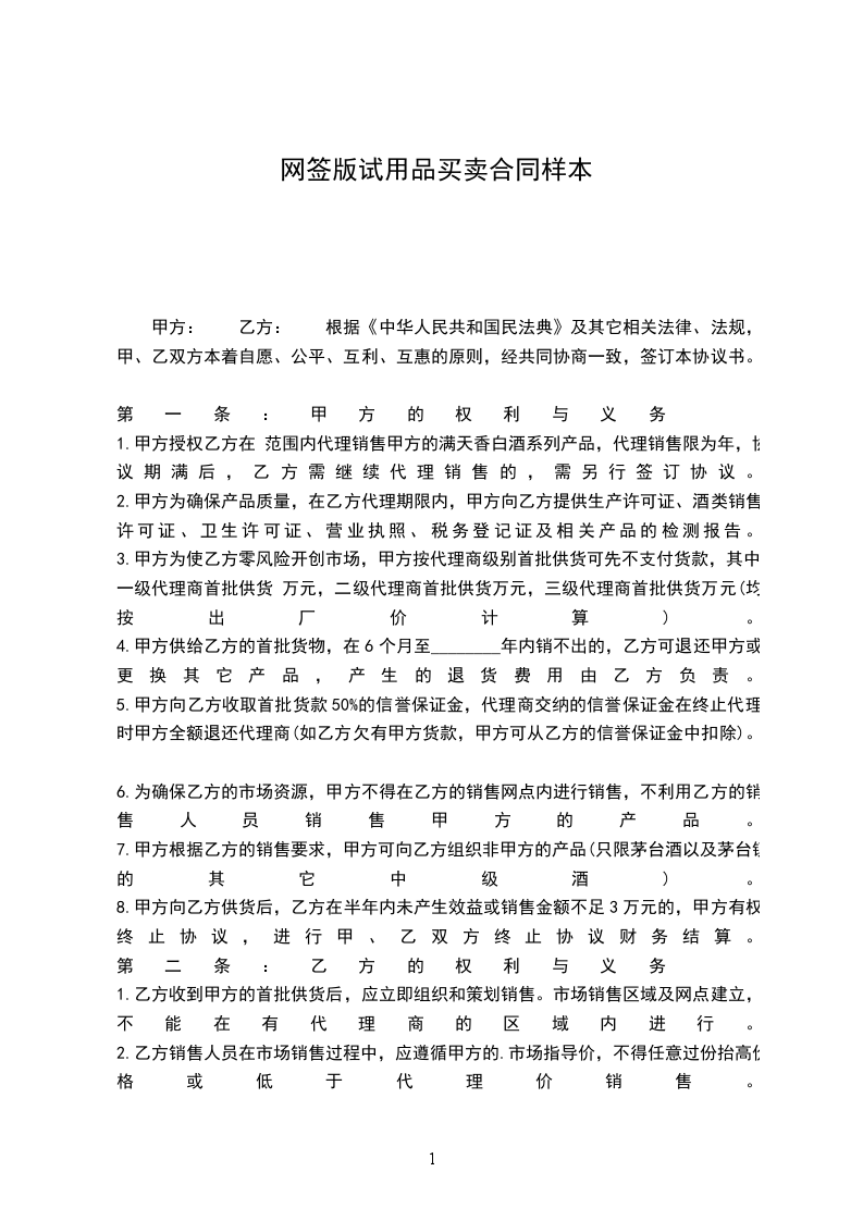 甲方:_________ 代表人:_________ 地址:_________ 乙方:_________ 地址:_________ 代表人:_________ 甲乙双方代表经过友好协商签订本合同。