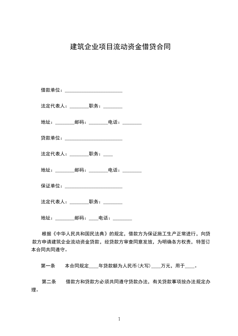 根据《中华人民共和国民法典》的规定,借款方为保证施工生产正常进行,向贷款方申请建筑企业流动资金贷款,经贷款方审查同意发放,为明确各方权责,特签订本合同共同遵守。