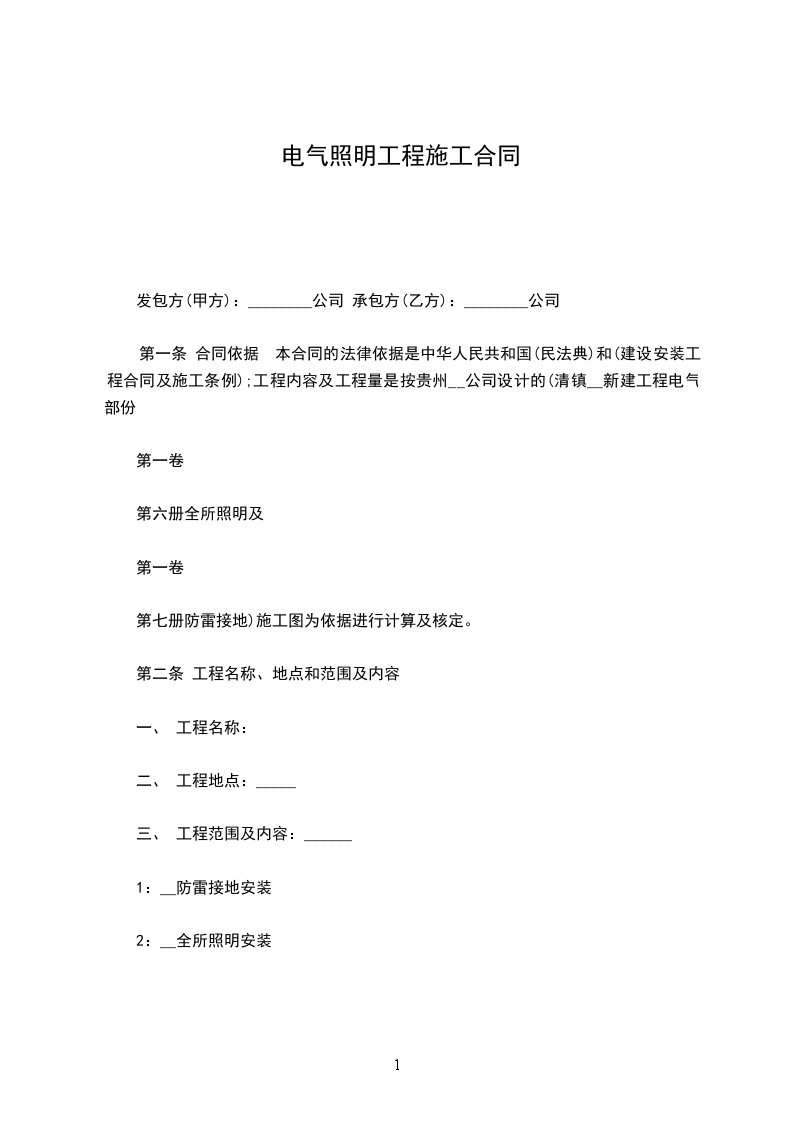 第一条 合同依据 本合同的法律依据是中华人民共和国(民法典)和(建设安装工程合同及施工条例);工程内容及工程量是按贵州__公司设计的(清镇__新建工程电气部份