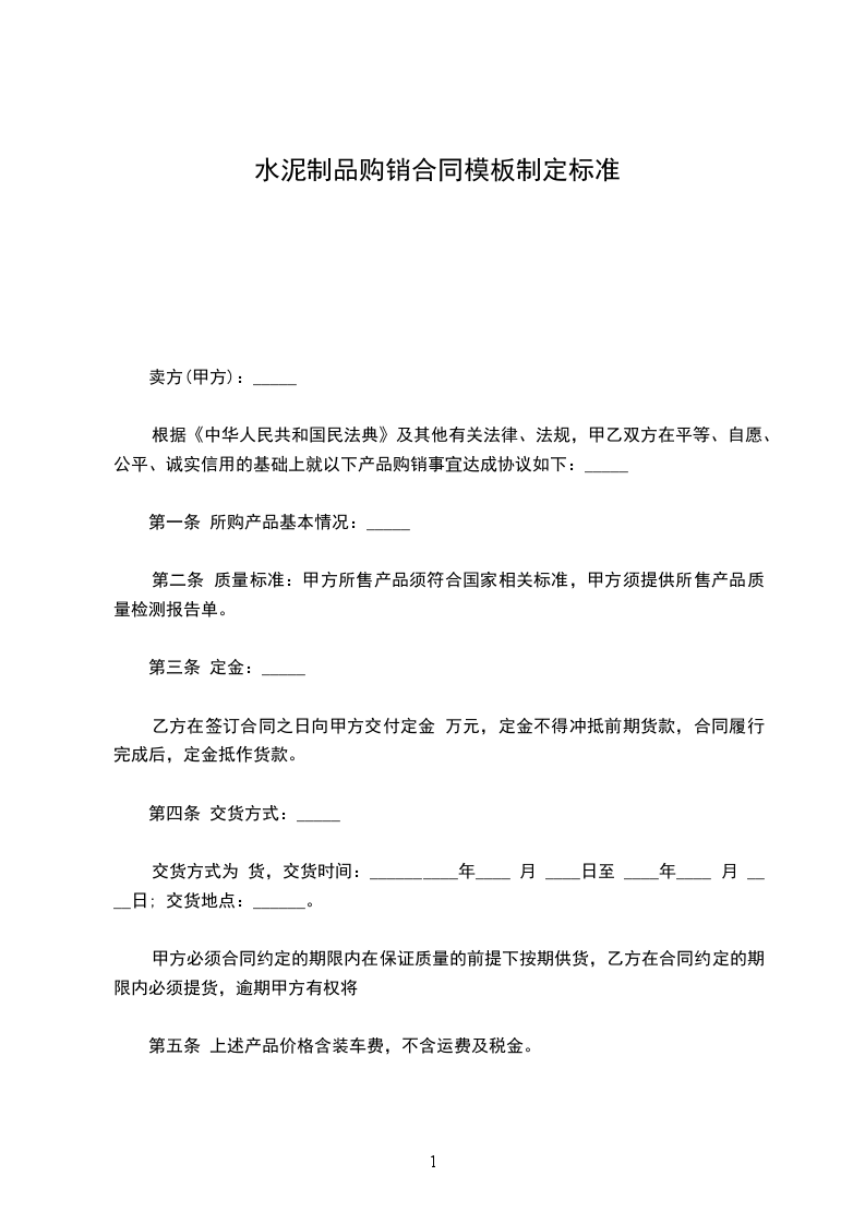 根据《中华人民共和国民法典》及其他有关法律、法规,甲乙双方在平等、自愿、公平、诚实信用的基础上就以下产品购销事宜达成协议如下:_____