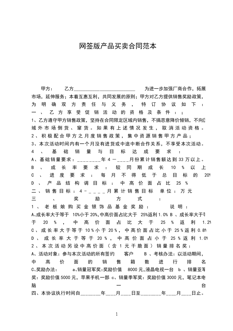 甲方: 乙方__________________________ 为进一步加强厂商合作,拓展市场,延伸服务;本着互惠互利,共同发展的原则;甲方对乙方提供销售奖励政策,为明确双方责任与义务,特订协议如下: