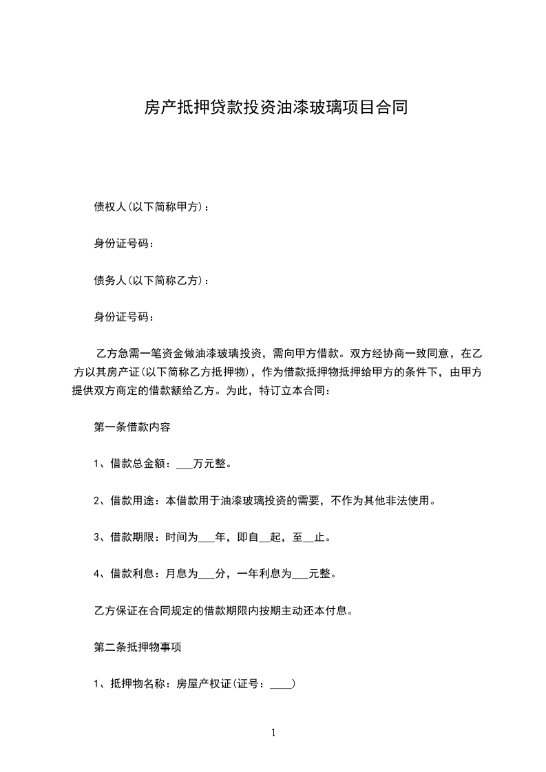 2、借款用途:本借款用于油漆玻璃投资的需要,不作为其他非法使用。