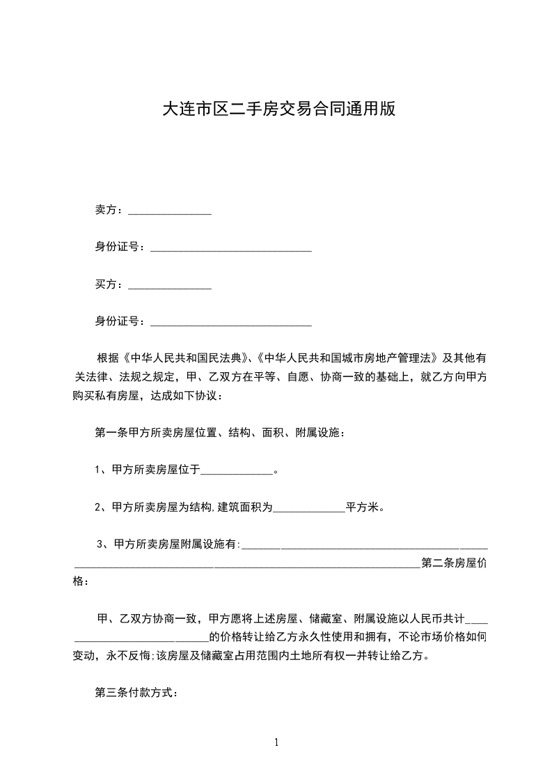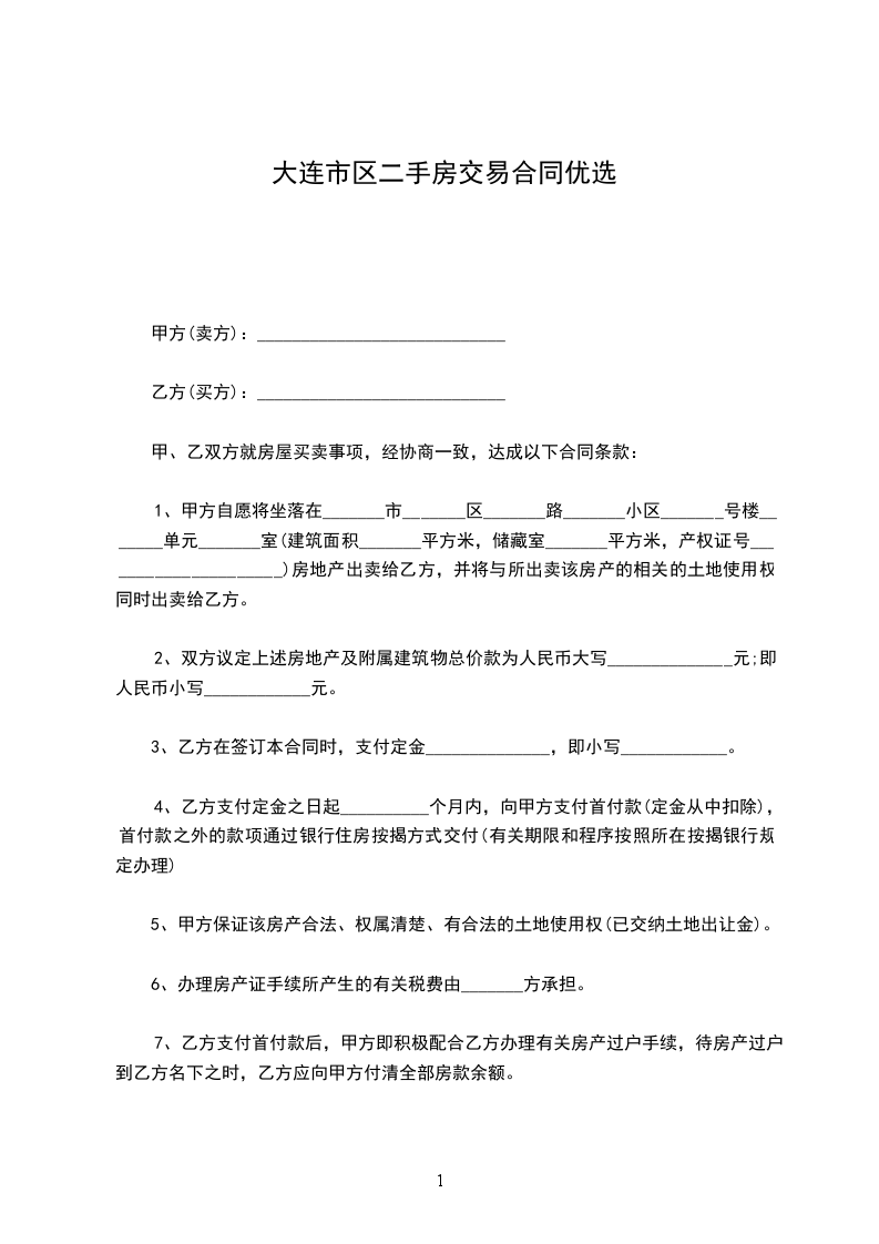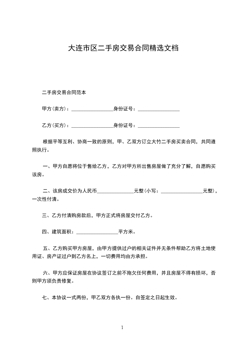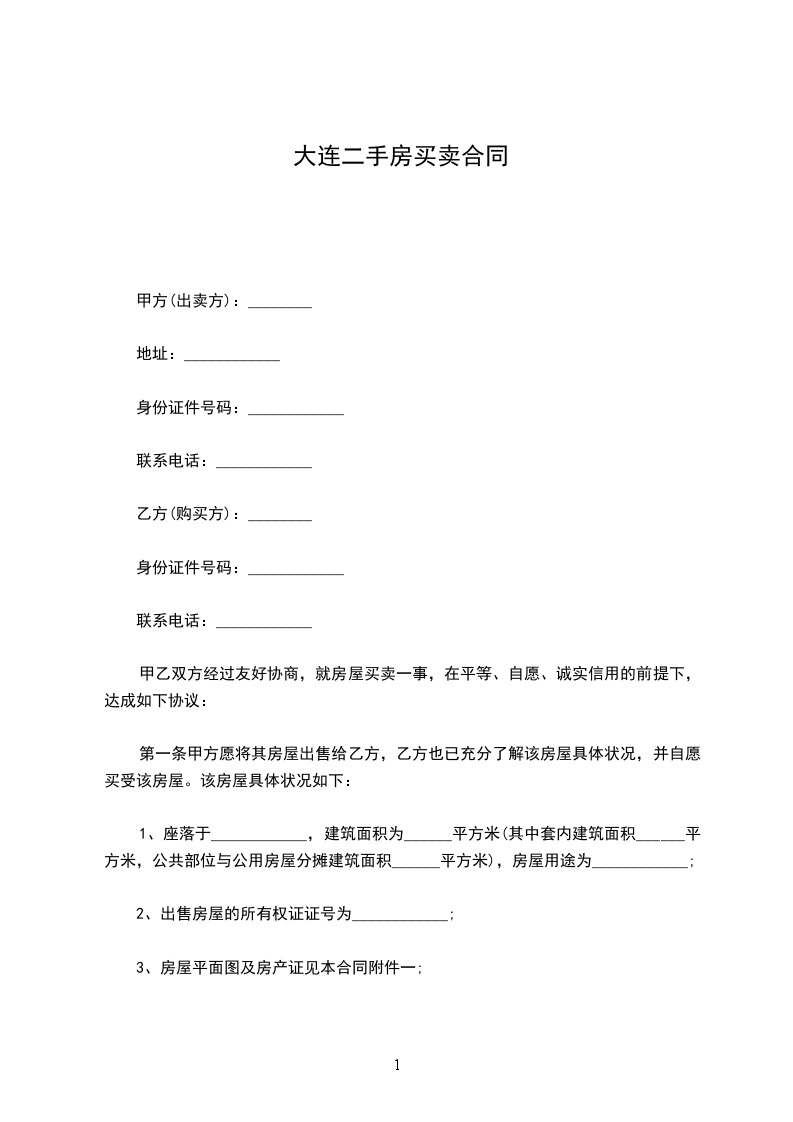 一、甲方愿将自有坐落_________市_________路_________号房屋_________间,建筑面积_________平方米售卖给乙方。