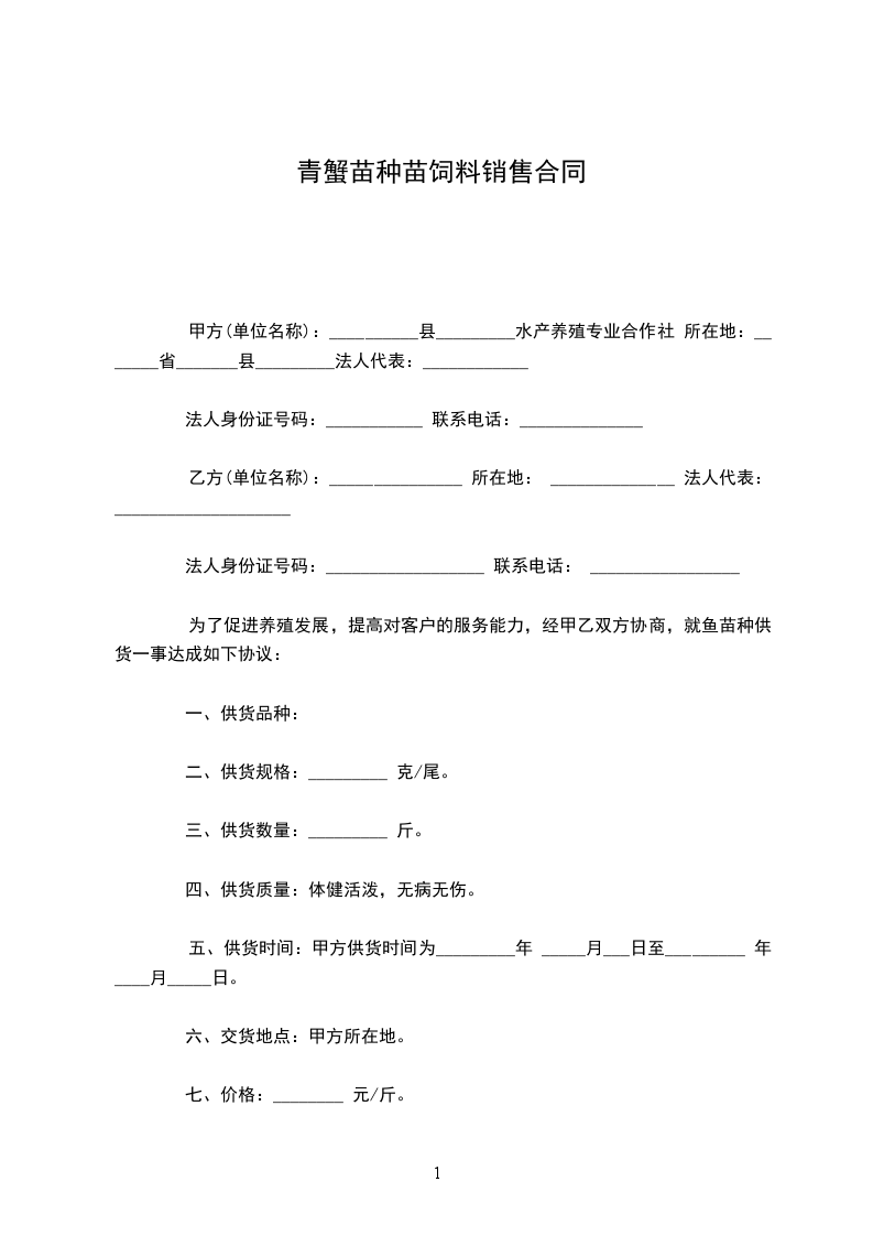 甲方(单位名称):__________县_________水产养殖专业合作社 所在地:_______省_______县_________法人代表:____________