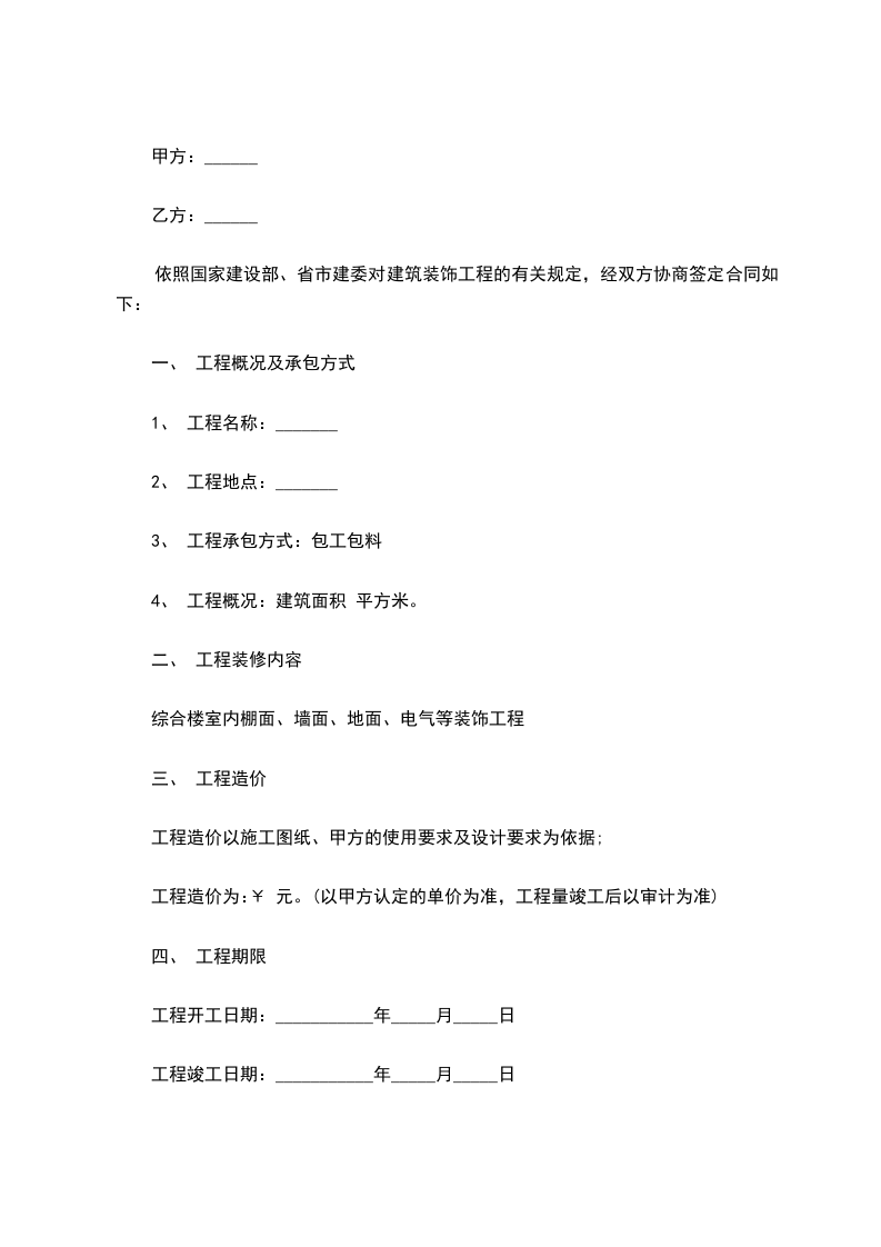 依照国家建设部、省市建委对建筑装饰工程的有关规定,经双方协商签定合同如下: