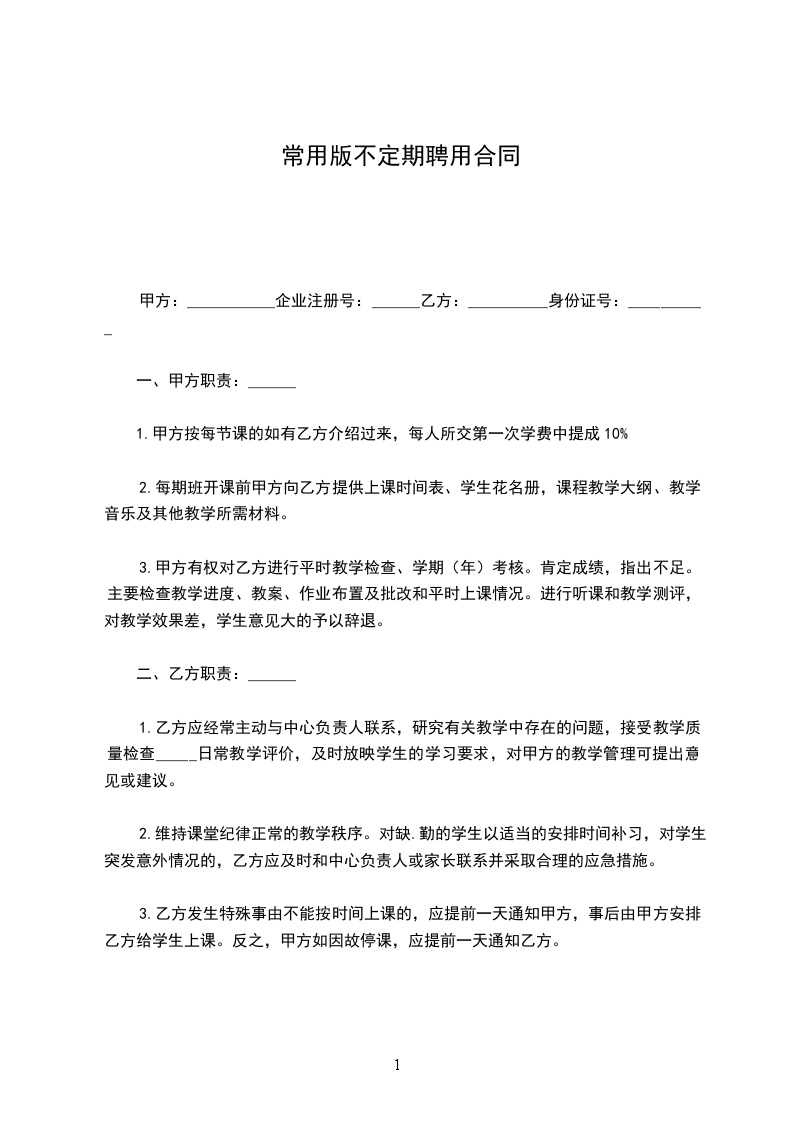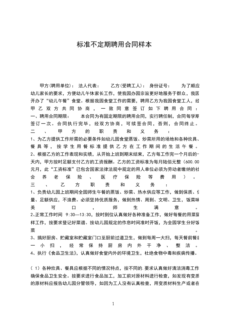 第一条聘用期限: 聘用期限________年,自________年月____日起至________年月____日止。聘用协议期满前一个月,经双方协商同意,可以续订聘用协议。本协议期限届满后,任何一方不再续订聘用协议的,应在协议期满前一个月书面通知对方。