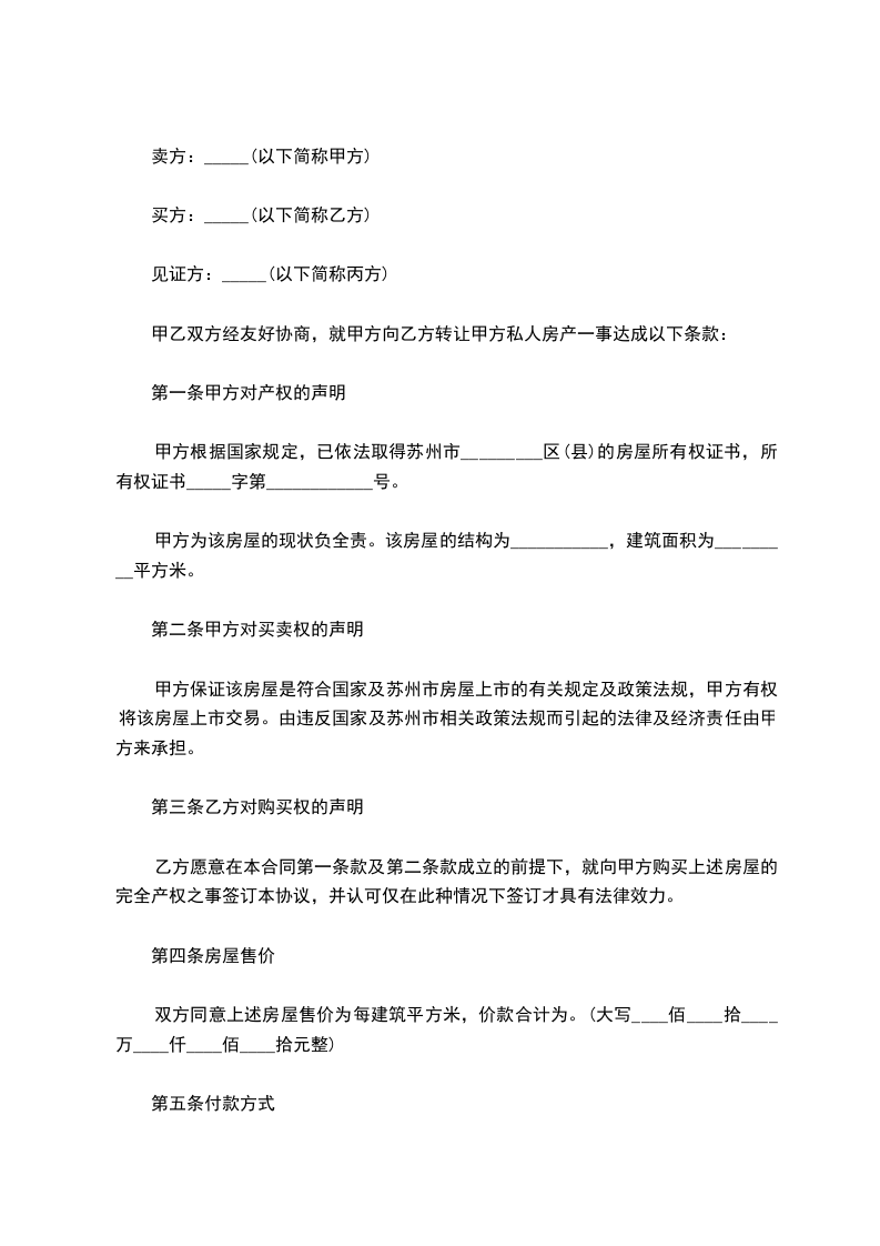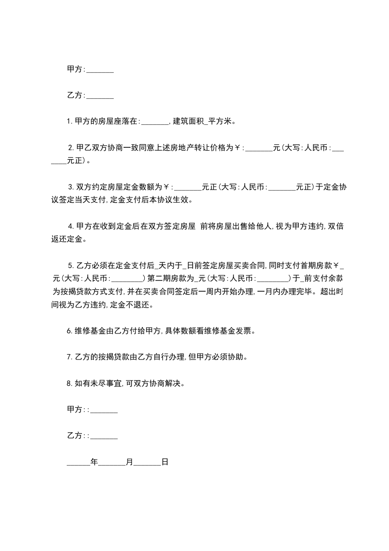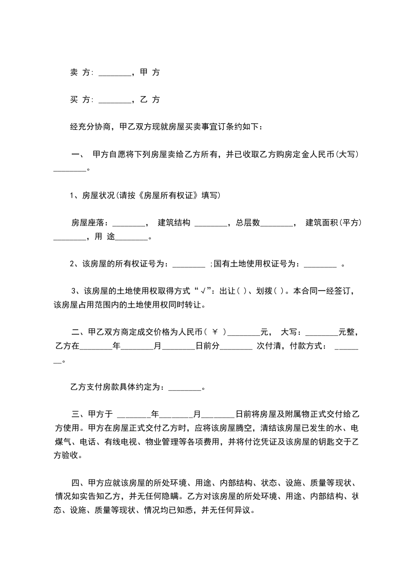 甲、乙双方在平等、自愿、协商一致的基础上就买卖房屋事宜达成如下协议:_______