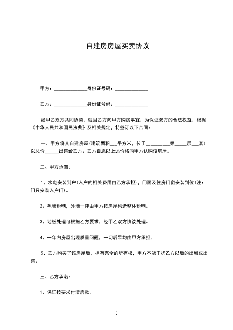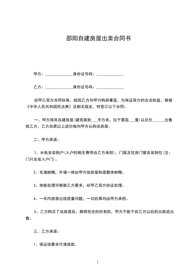 卖方(甲方):_______身份证号:_______