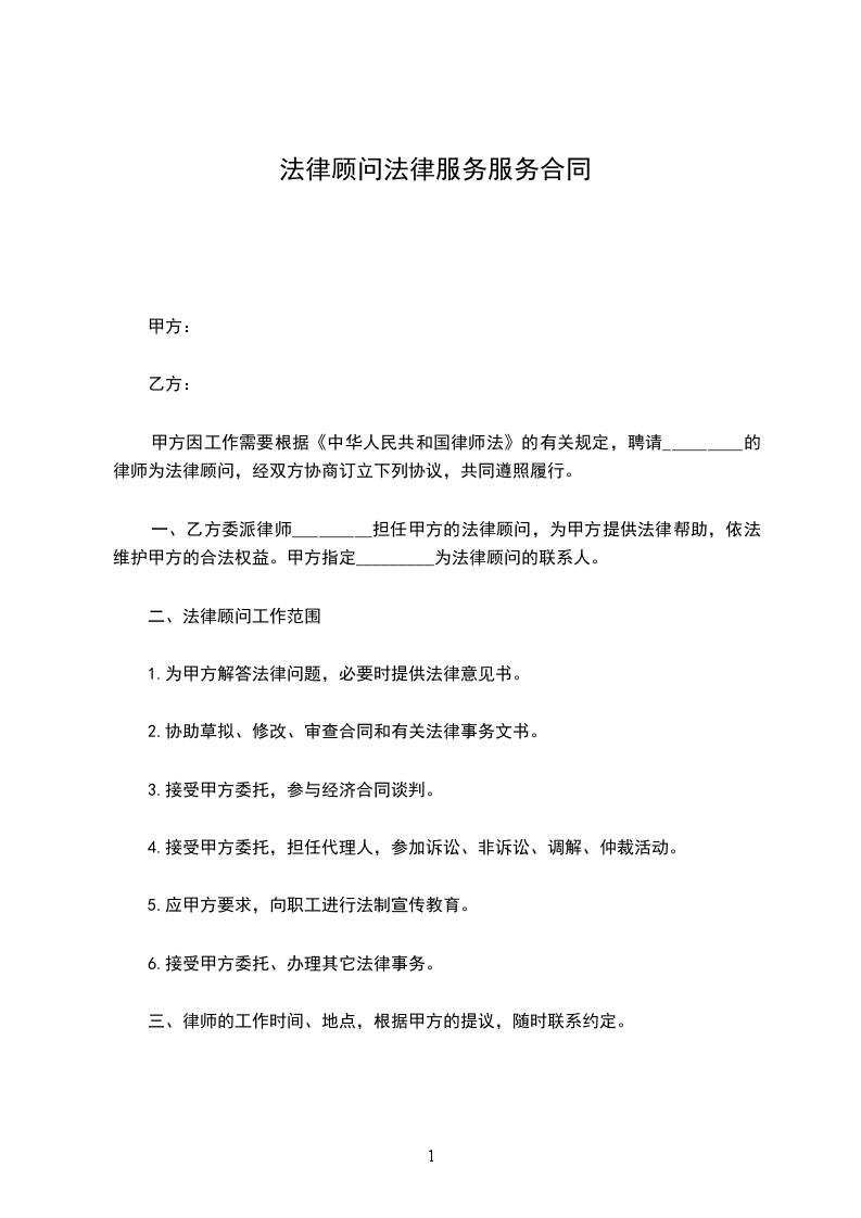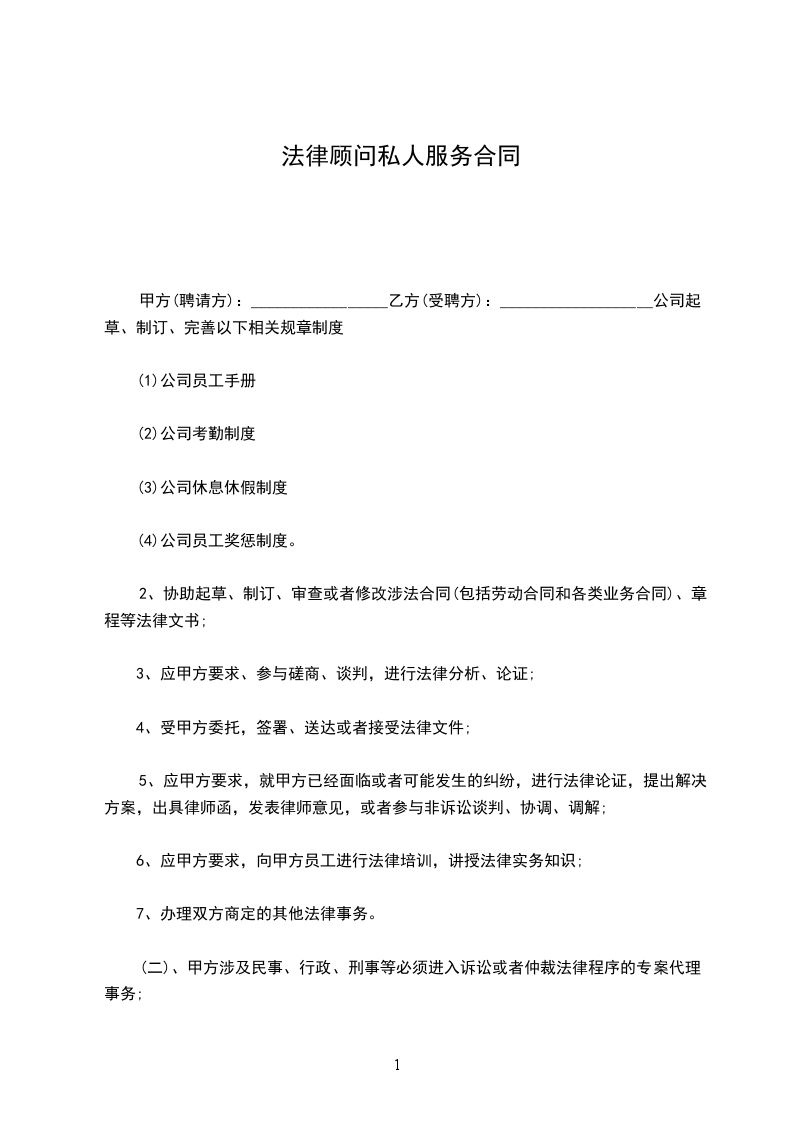 1、甲方向乙方就上述范围内的法令业务供给口头的咨询、回答和定见主张。