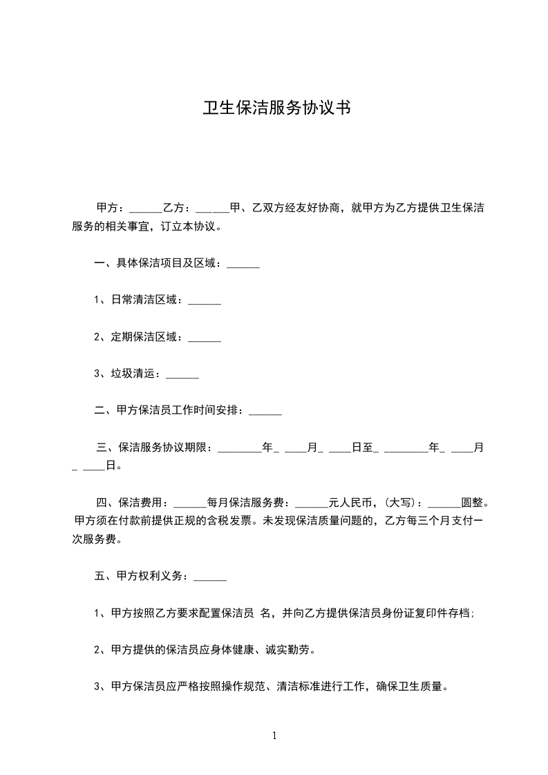 甲方:______乙方:______甲、乙双方经友好协商,就甲方为乙方提供卫生保洁服务的相关事宜,订立本协议。
