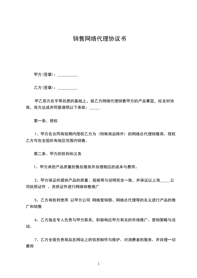 4.若甲方在全国范围内打折,提前二周通知乙方,相应让扣1%-5%。