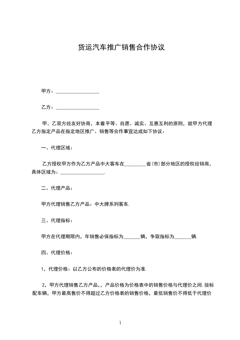乙方授权甲方作为乙方产品中大客车在_________省(市)部分地区的授权经销商,具体区域为:__________________.