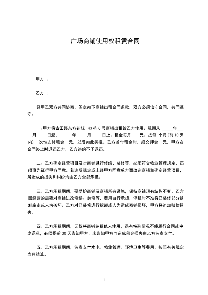 租赁期满后,乙方应在______天内将承租的商铺交还甲方,如有留置的任何物品,在未取得甲方的谅解之下,均视为放弃,任凭甲方处置,乙方绝无异议。本合同一经双方签署后立即生效,未尽事宜,甲、乙双方可另行协商。