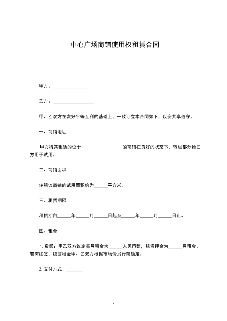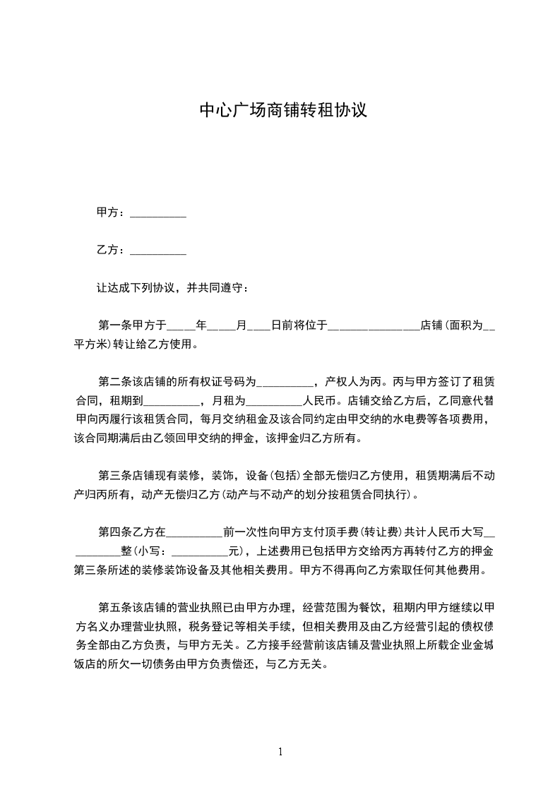 甲方将其租赁的位于__________________的商铺在良好的状态下,转租部分给乙方用于试用。