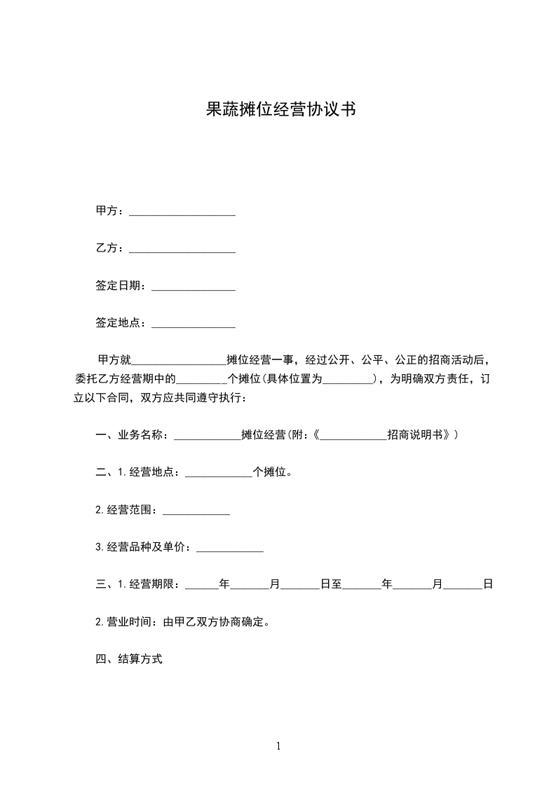 果蔬摊位租赁经营合同