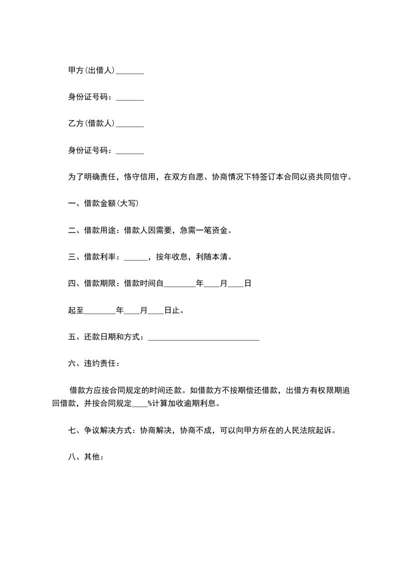 甲方(借款人)_______乙方(出借人)_______