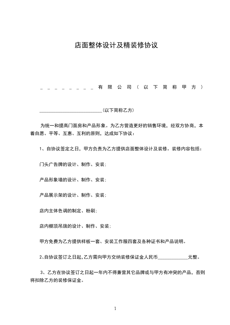 1、自协议签定之日,甲方负责为乙方提供店面整体设计及装修。装修内容包括: