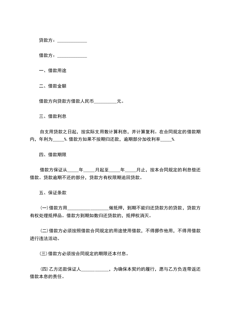 借款方保证从_____年_____月起至_____年_____月止,按本合同规定的利息偿还借款。贷款逾期不还的部分,贷款方有权限期追回贷款。