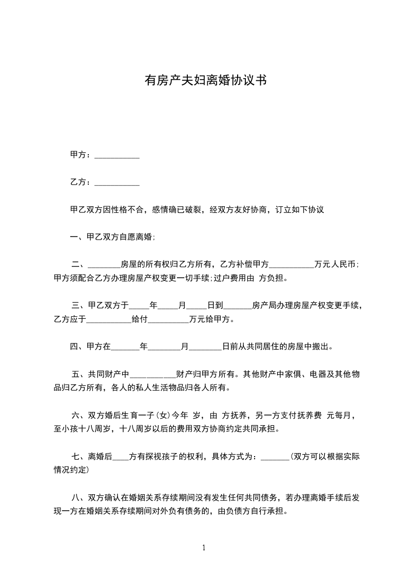 甲乙双方因性格不合,感情确已破裂,经双方友好协商,订立如下协议