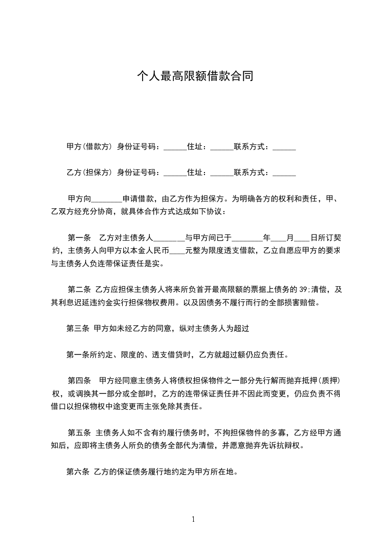 乙方(担保方) 身份证号码:______住址:______联系方式:______