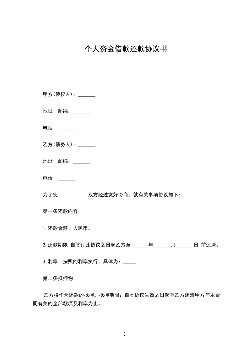 2.还款期限:自签订此协议之日起乙方至_______年_______月_______日 前还清。