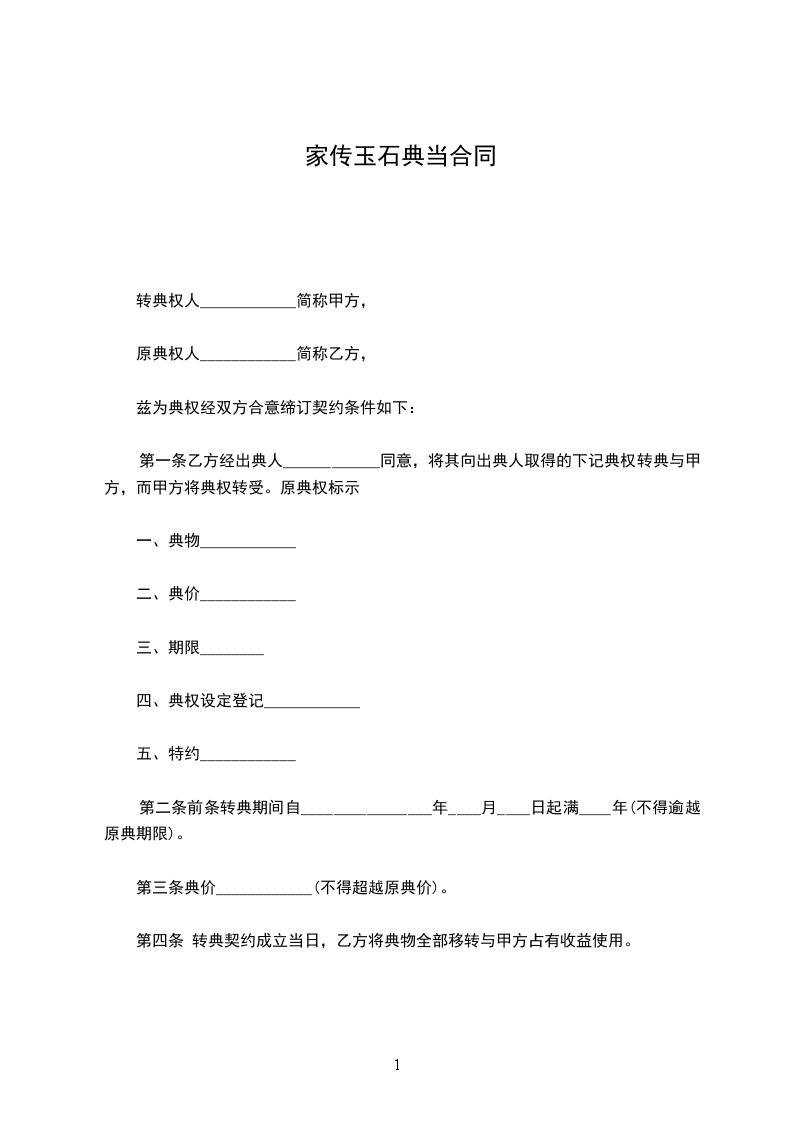 第一条 乙方经出典人 同意,将其向出典人取得的下记典权转典与甲方,而甲方将典权转受。原典权标示