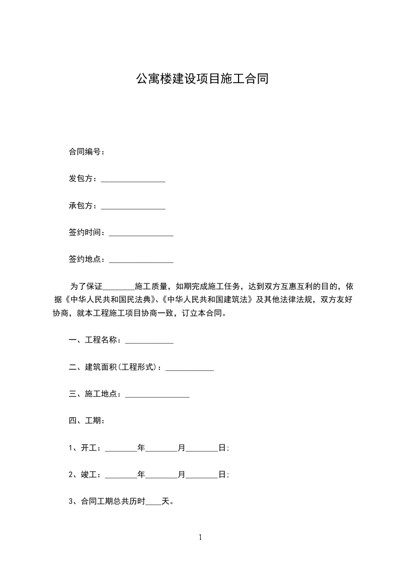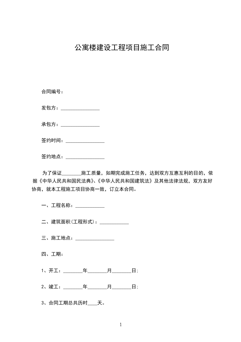 为了保证________施工质量,如期完成施工任务,达到双方互惠互利的目的,依据《中华人民共和国民法典》、《中华人民共和国建筑法》及其他法律法规,双方友好协商,就本工程施工项目协商一致,订立本合同。