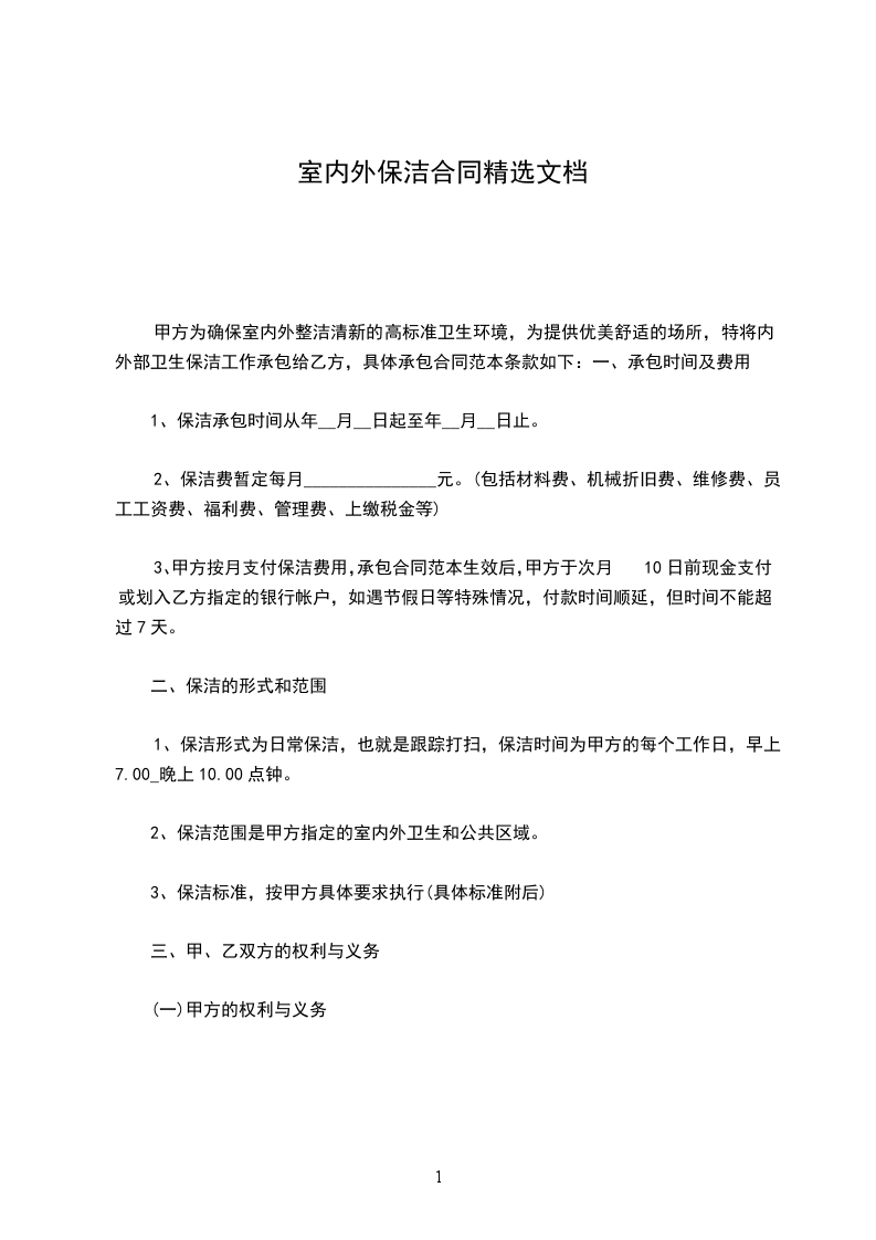 1、保洁时间从________年____月____日起至________年____月____日