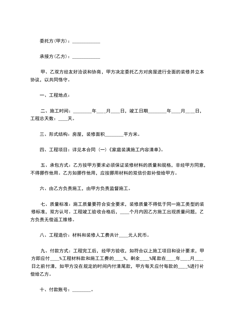 四、工程项目:详见本合同 (一)《家庭装潢施工内容清单》。