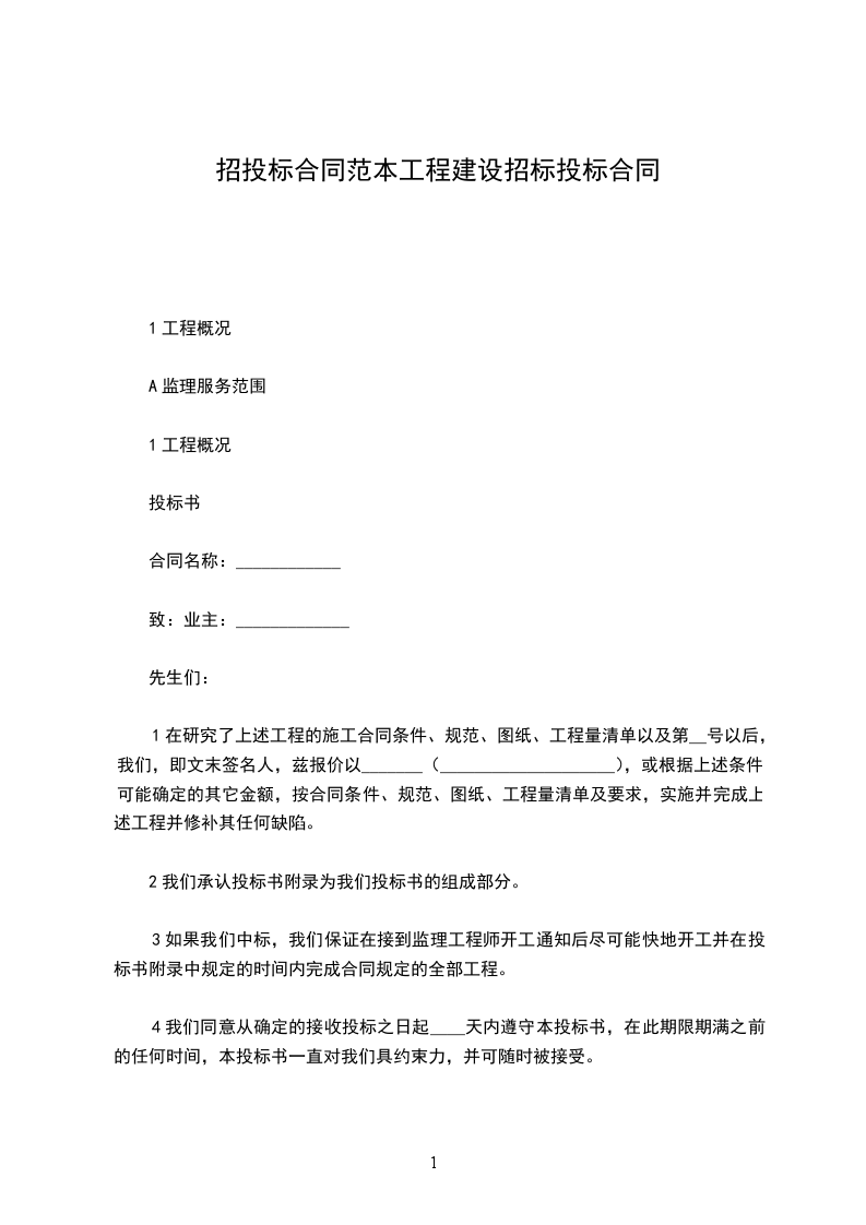 1在研究了上述工程的施工合同条件、规范、图纸、工程量清单以及附页第_号以后,我们,即文末签名人,兹报价以____________________________________(__________),或根据上述条件可能确定的其它金额,按合同条件、规范、图纸、工程量清单及附页要求,实施并完成上述工程并修补其任何缺陷。