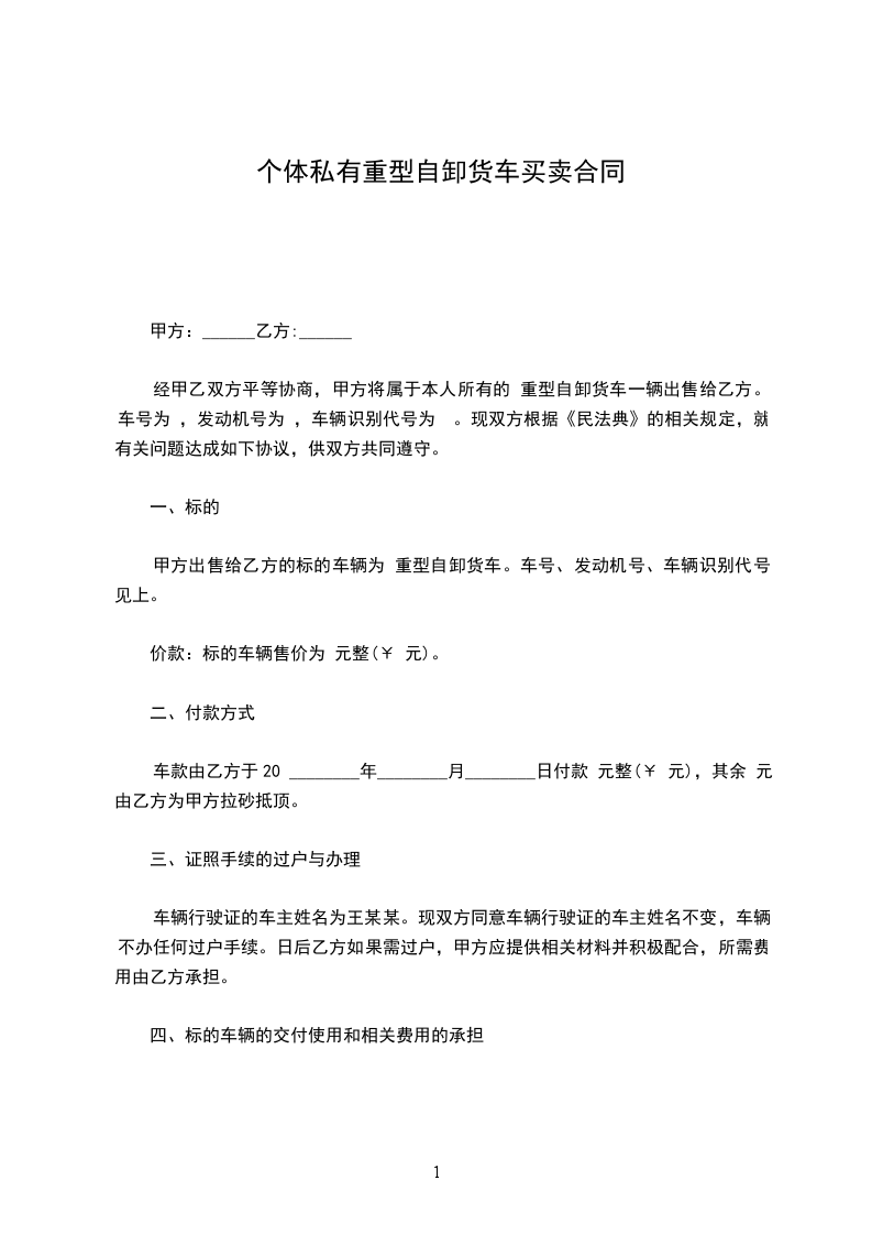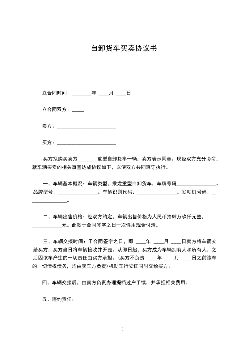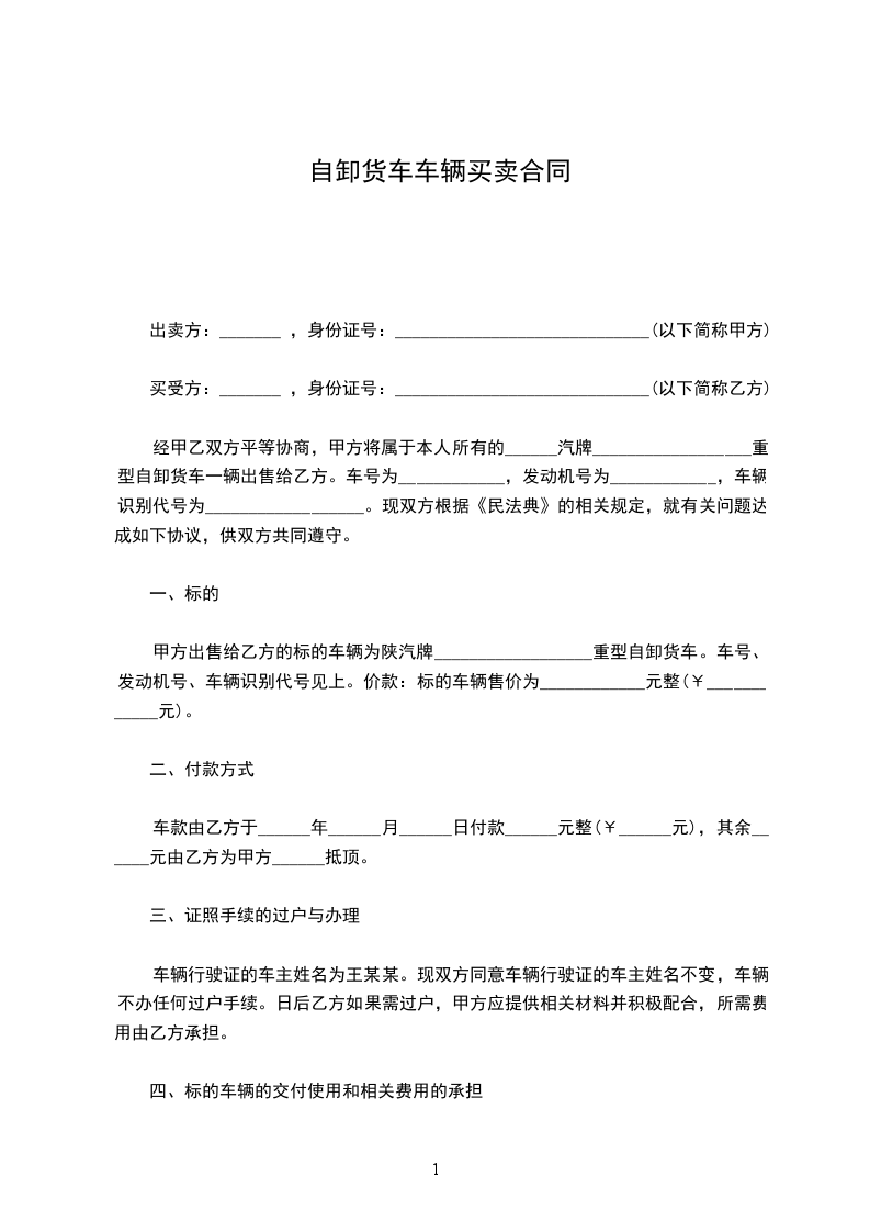 买方拟购买卖方________重型自卸货车一辆,卖方表示同意。现经双方充分协商,就车辆买卖的相关事宜达成协议如下,以便双方共同遵守执行。