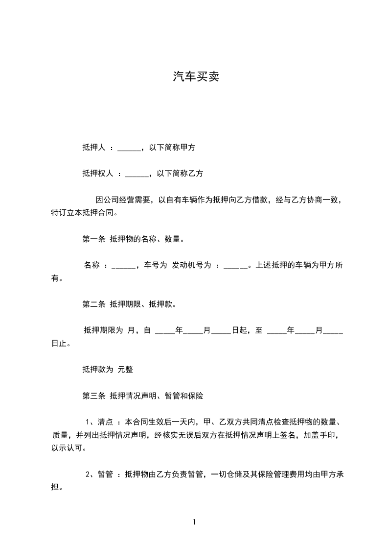 1、汽车价格: 汽车总价款为人民币(大写) _____________元辆(小写:_____________元),以上价格仅为 提货的裸购车款,并不含汽车因上牌、上路、营运等其他费用。