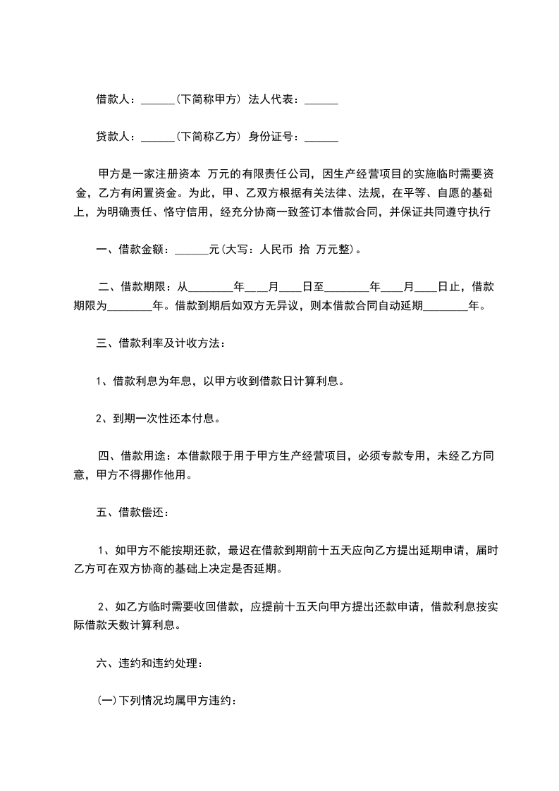 借款方因生产经营活动,流动资金出现短缺,向贷款方借款,双方本着互惠互利的原则,经双方友好协商,特订立本合同,以便共同遵守。