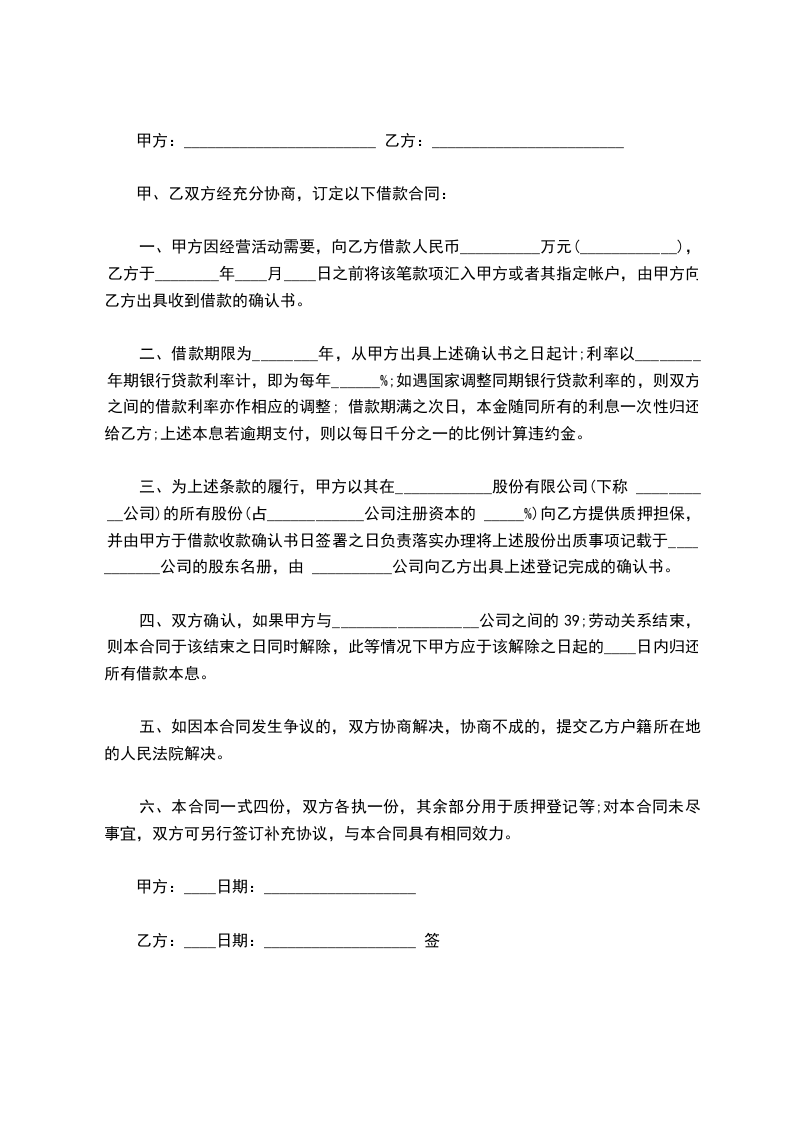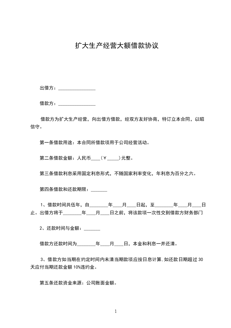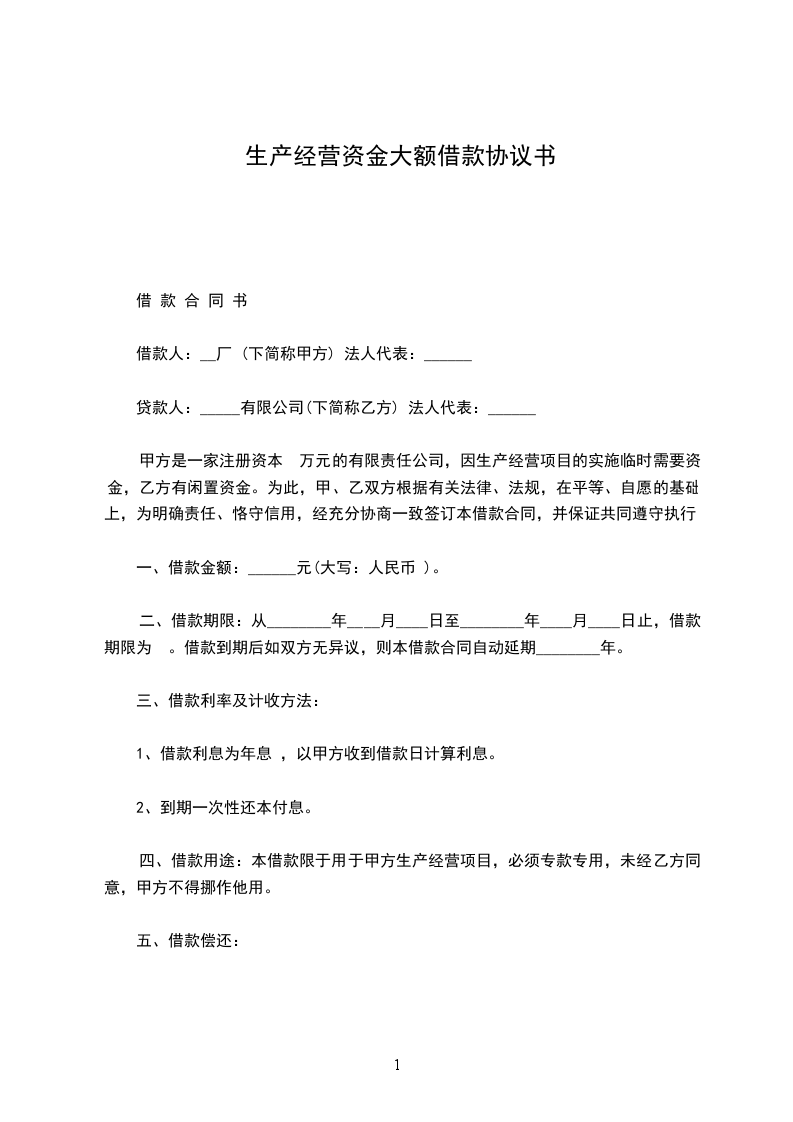 1.借款时间共1年,自___________月______日止。