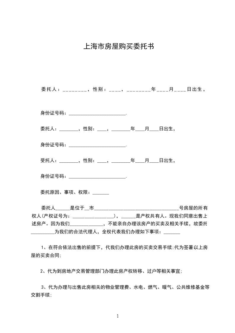 1、在符合依法出售的前提下,代我们办理此房的买卖交易手续;代为签署以上房屋的买卖合同;