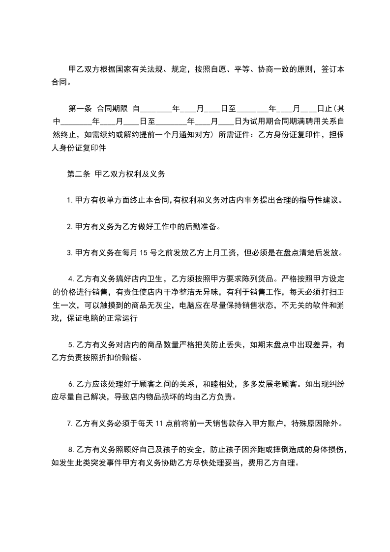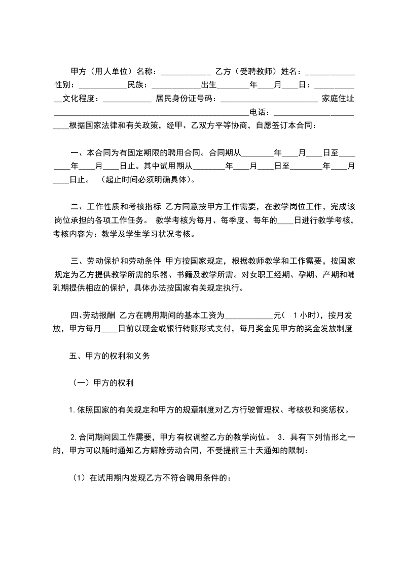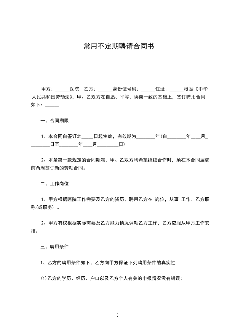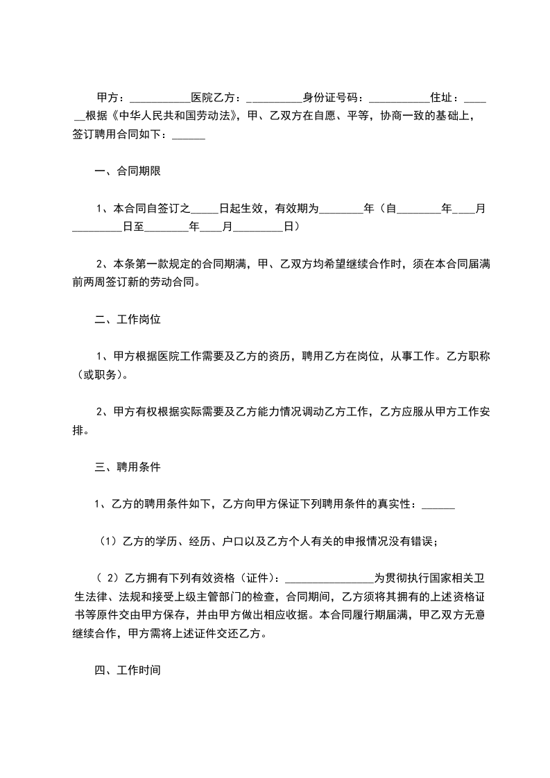 第一条聘用期限: 聘用期限________年,自________年月____日起至________年月____日止。聘用协议期满前一个月,经双方协商同意,可以续订聘用协议。本协议期限届满后,任何一方不再续订聘用协议的,应在协议期满前一个月书面通知对方。
