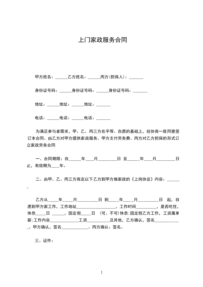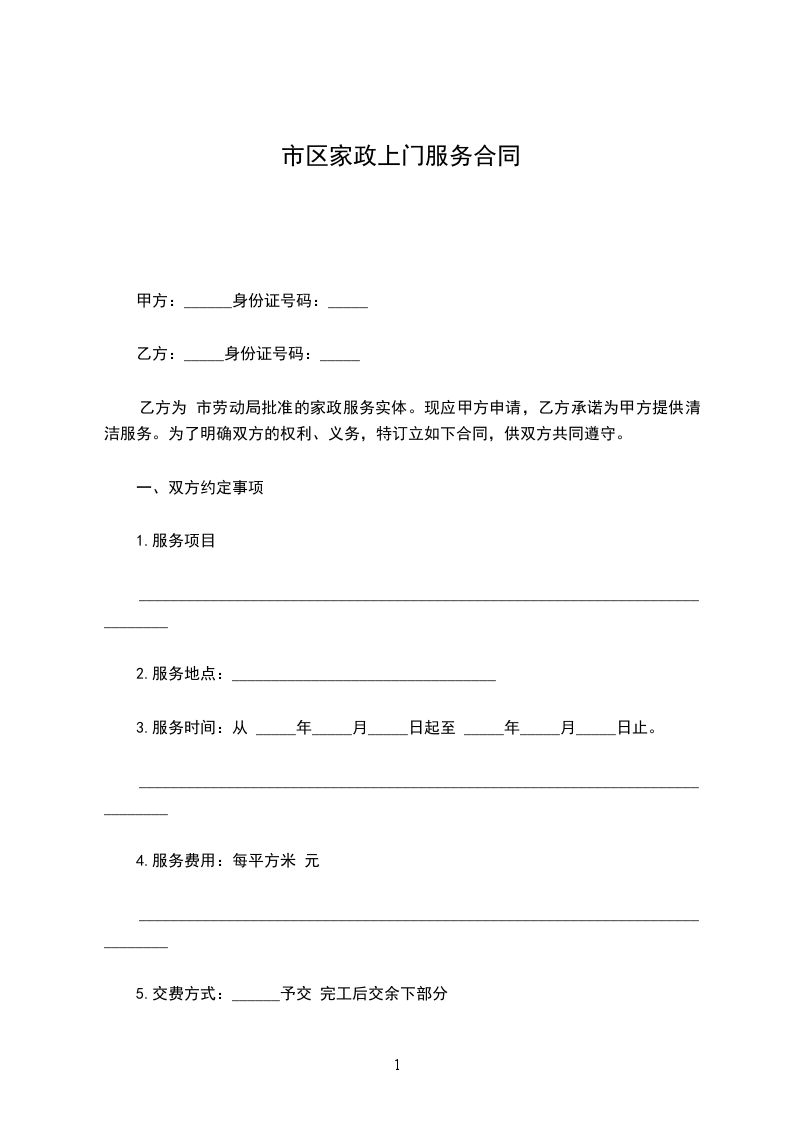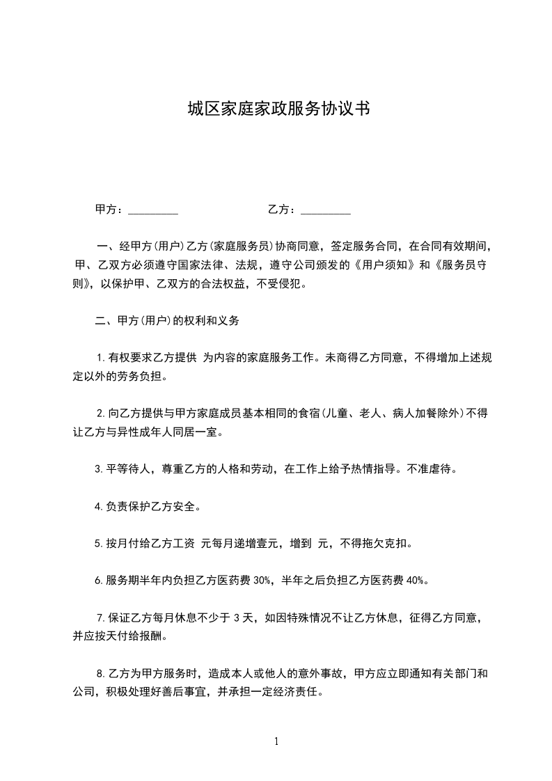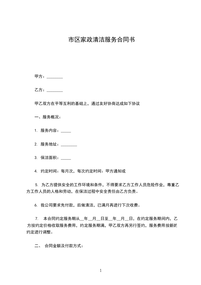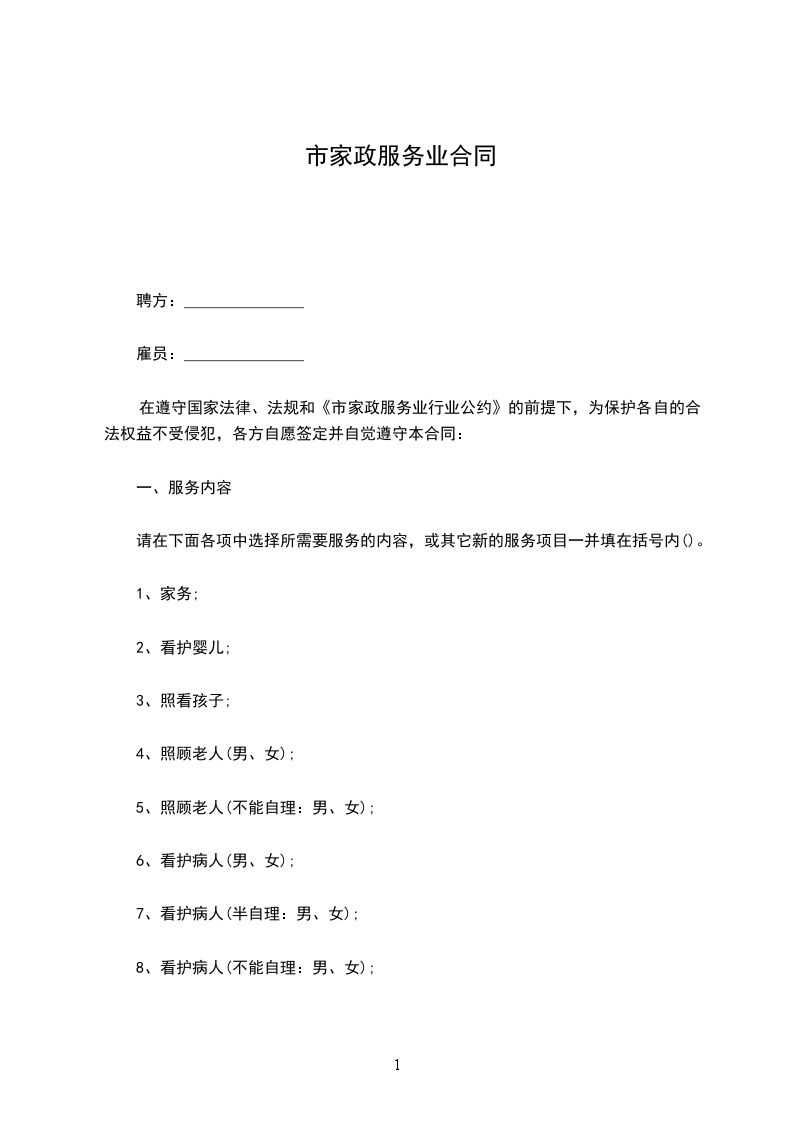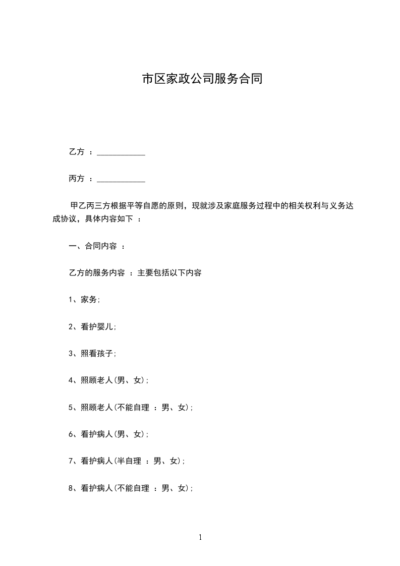 乙方为 市劳动局批准的家政服务实体。现应甲方申请,乙方承诺为甲方提供清洁服务。为了明确双方的权利、义务,特订立如下合同,供双方共同遵守。