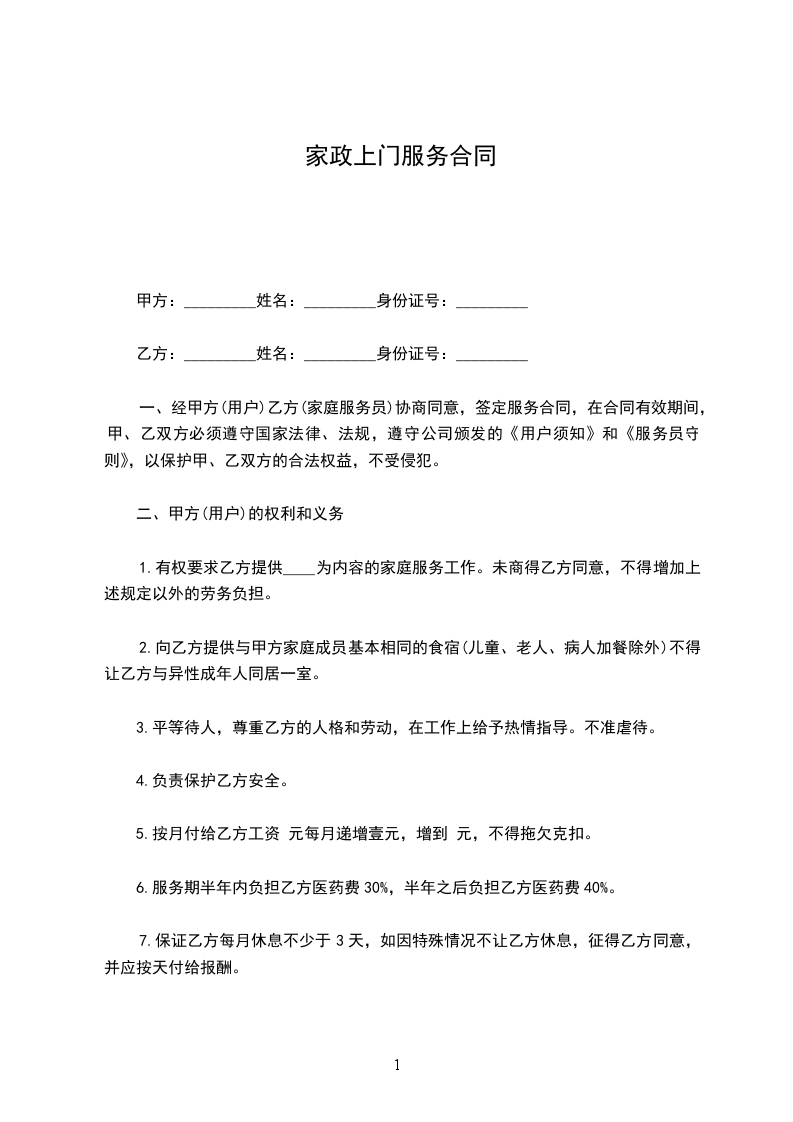 1.甲方认为乙方派出的家政员不适用,并有充分的理由,乙方给予调换。